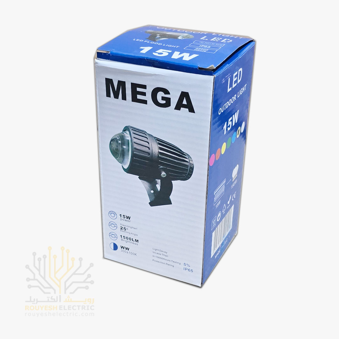جت لایت 15 وات خارجی برند مگا بدنه مشکی انبه ای