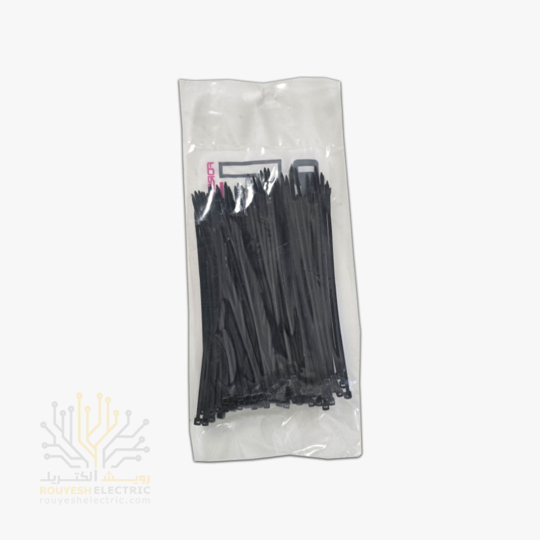 بست کمربندی یه جور قفل پلاستیکی کوچیکه که شکلش شبیه کمربنده. طولش حدود ۱5 سانته و عرضش ۲.۵ میلی متر، یعنی اندازهای که برای جمعوجور کردن سیمها یا بستهبندی خیلی مناسبه. جنسش از پلاستیکه و رنگش مشکیه، که باعث میشه توی محیطهای مختلف خیلی راحت دیده بشه یا با بقیه وسایل هماهنگ بشه. بستهبندیاش به صورت نایلونی و تکیه، ولی داخل هر بسته ۱۰۰ تا بست هست. اگه بخوای عمده بخری، توی هر کارتن 340 بسته قرار میگیره. حداقل خرید هم فقط یه بستهست، پس برای مصرف کم هم مناسبه.