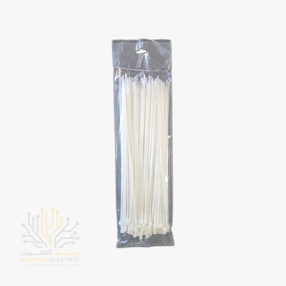 این بست کمربندی حدود ۳۰ سانت طول داره و عرضش هم تقریباً ۳/۶ میلی‌متره. جنسش از پلاستیکه و رنگ سفید داره. بسته‌هاش به‌صورت تکی و داخل نایلون عرضه میشه و هر بسته هم ۱۰۰ تا بست داره. اگه بخواین عمده بگیرین، هر کارتن شامل ۱۲۰ بسته‌ست. حداقل خرید هم یه بسته‌ست، پس حتی برای مصرف کم هم میشه راحت تهیه‌ش کرد.