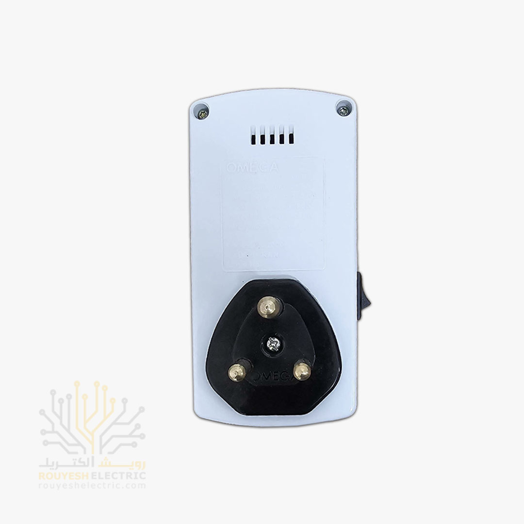 محافظ برق کولری دیواری سه شاخه برند امگا مدل S55000 MK استاندارد بدون ارت بدون کلید 40 آمپر دیجیتال