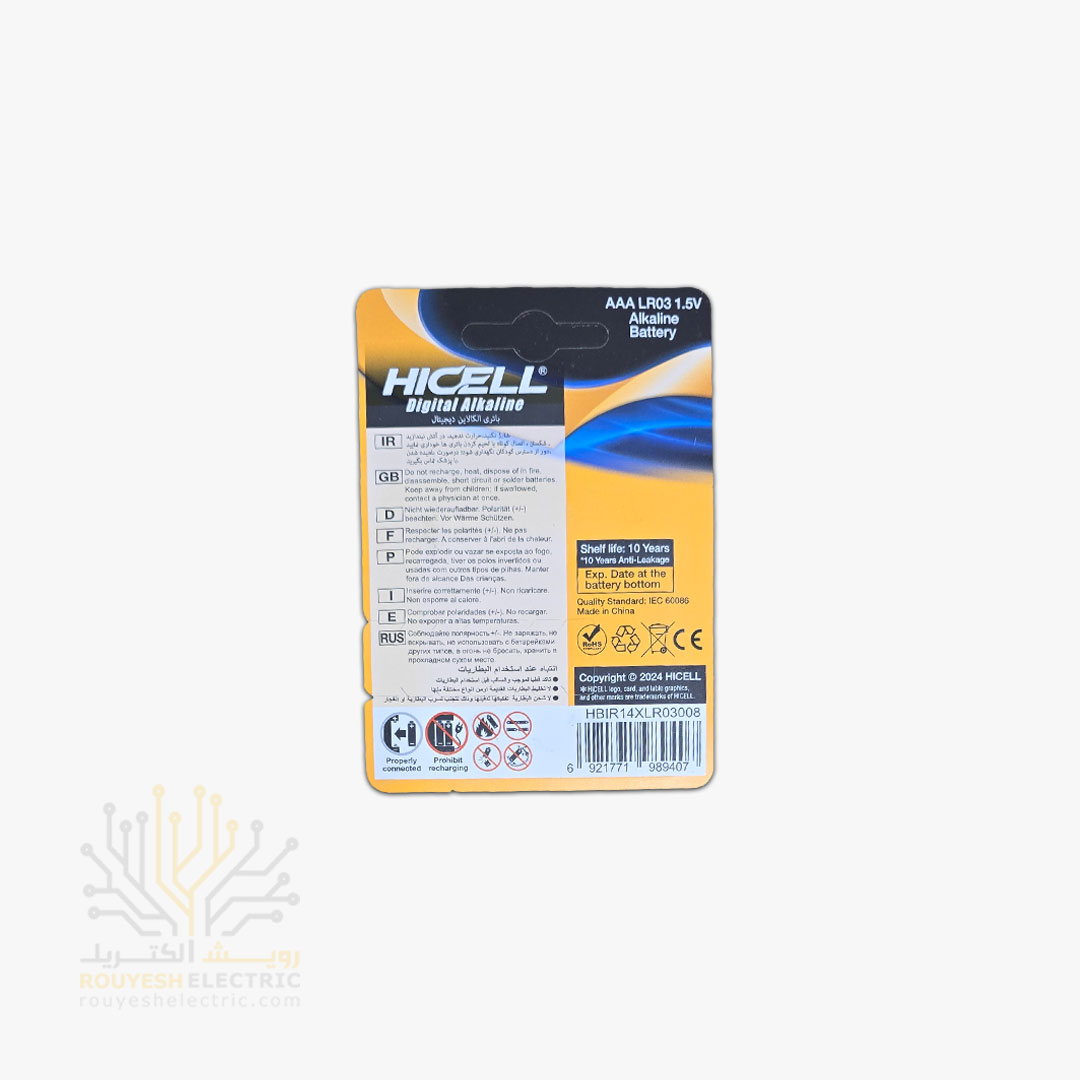 باطری نیم قلمی آلکالاین برند هایسل کارت 2 عددی