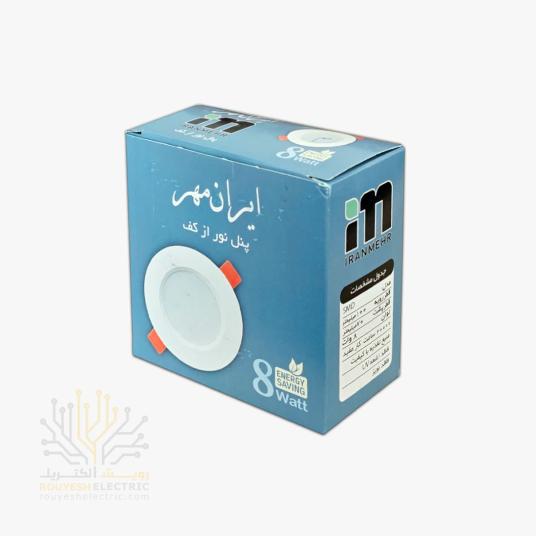 پنل سقفی توکار 8 وات برند ایران مهر مدل بک لایت مهتابی