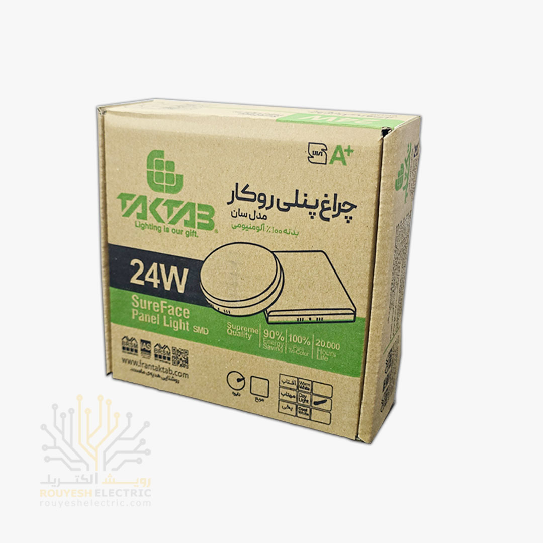 پنل سقفی روکار 24 وات برند تک تاب مدل فول لایت فنر متغیر دایره استاندارد مهتابی