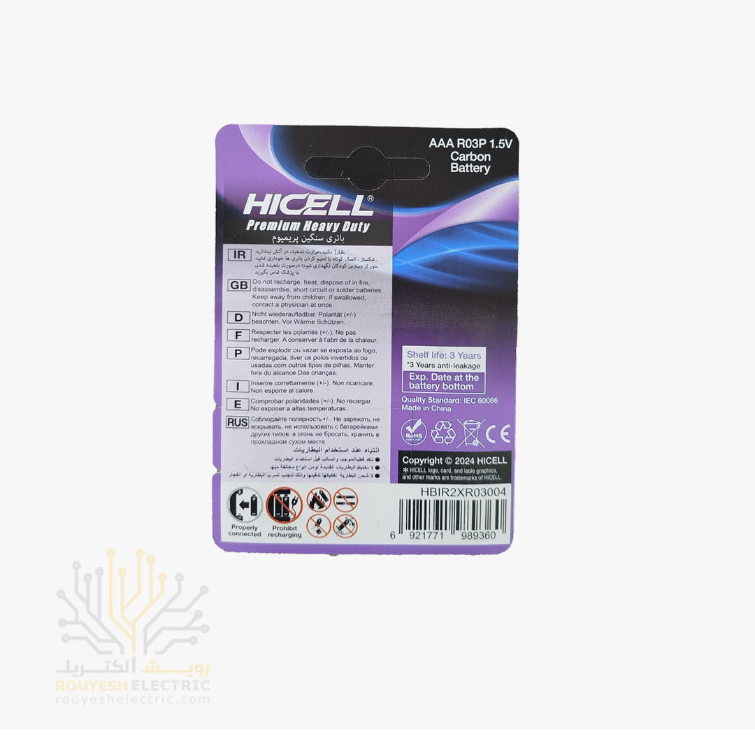 باطری نیم قلمی معمولی برند هایسل کارتی 2 تایی