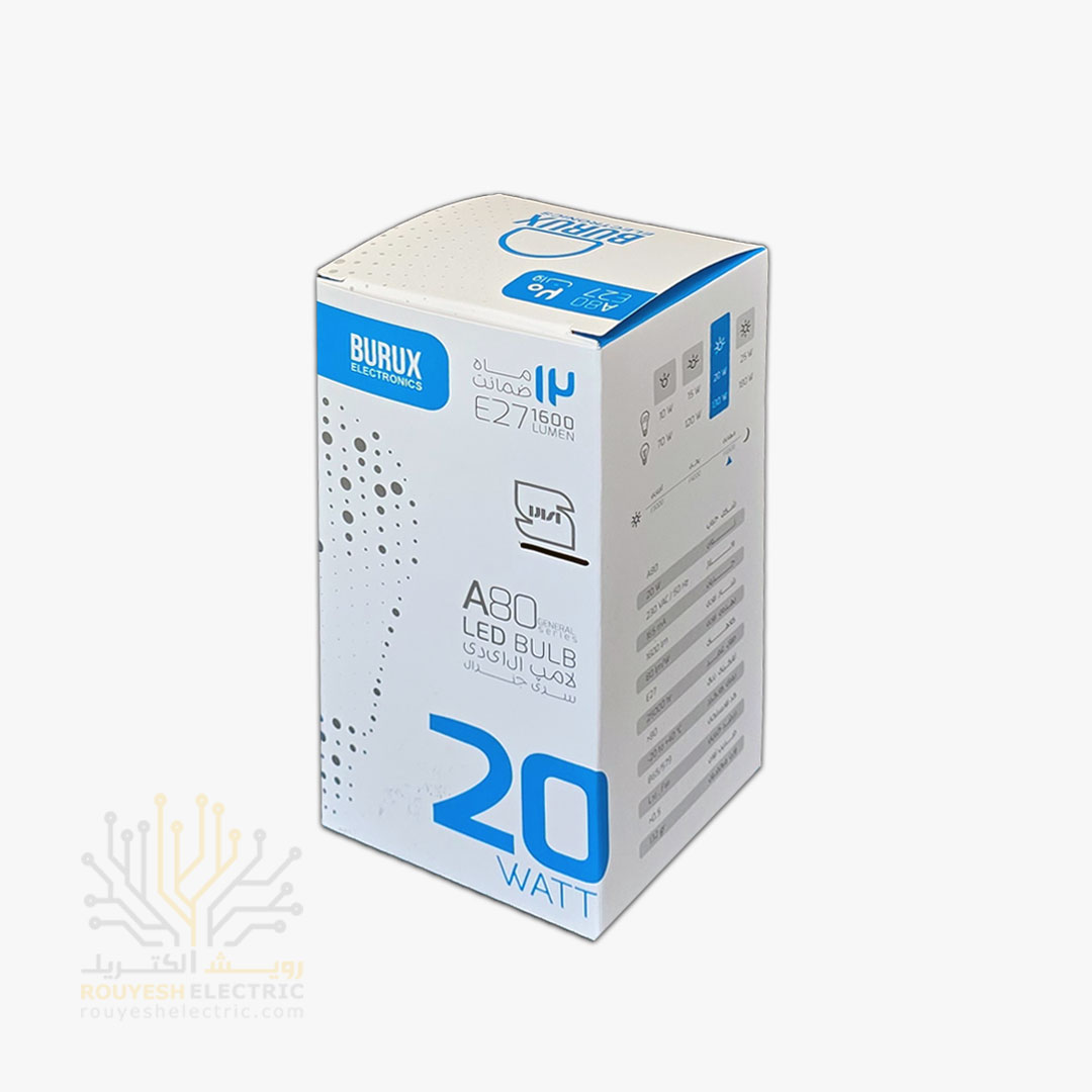 لامپ ال ای دی 20 وات حبابی برند بروکس مهتابی