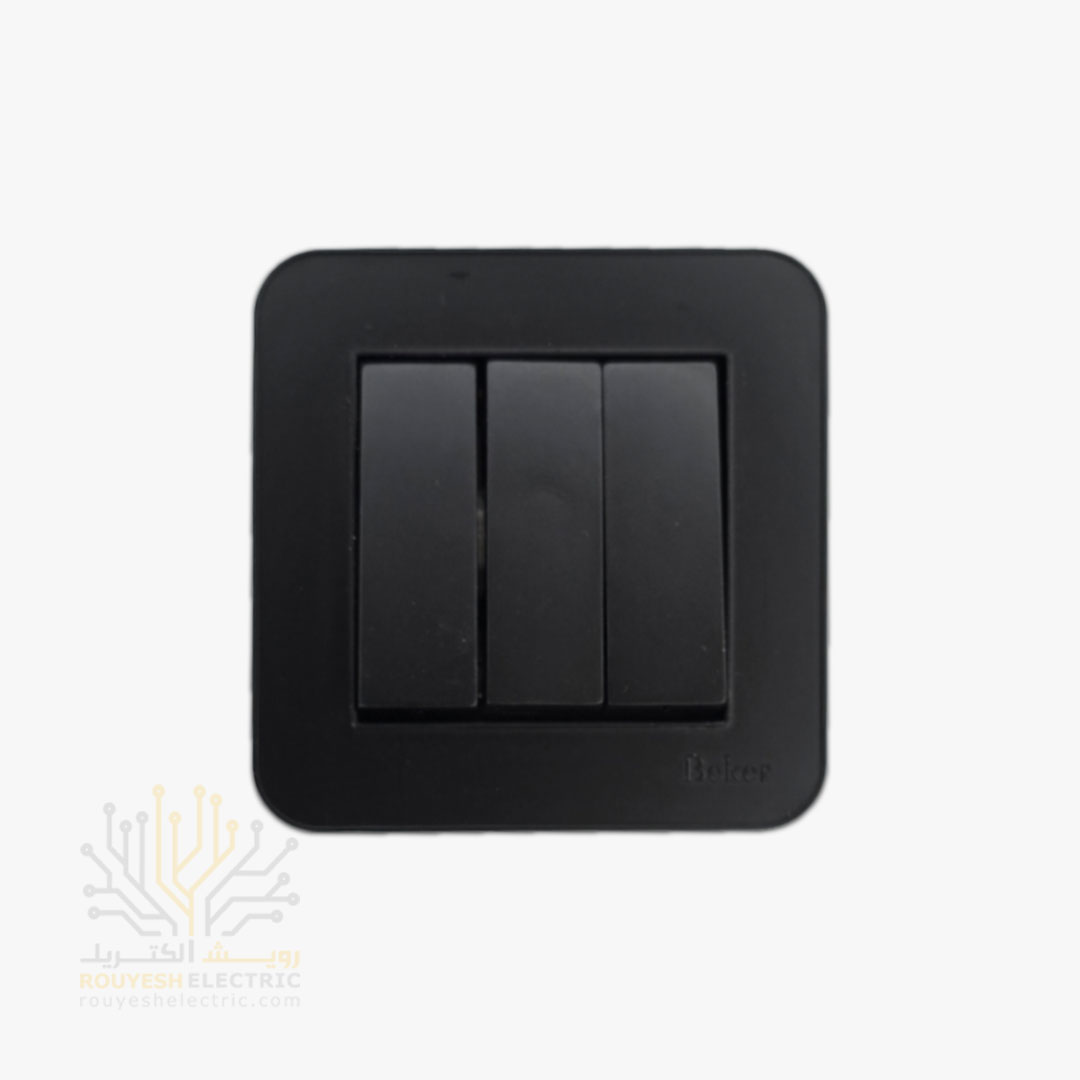 کلید سه پل توکار بکر مدل آتا مشکی شامل اجزای زیر است: