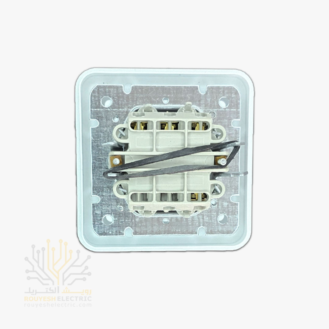 • قاب سفید با طراحی ساده و مدرن که با سایر اجزای کلید و پریز هماهنگ می‌شود