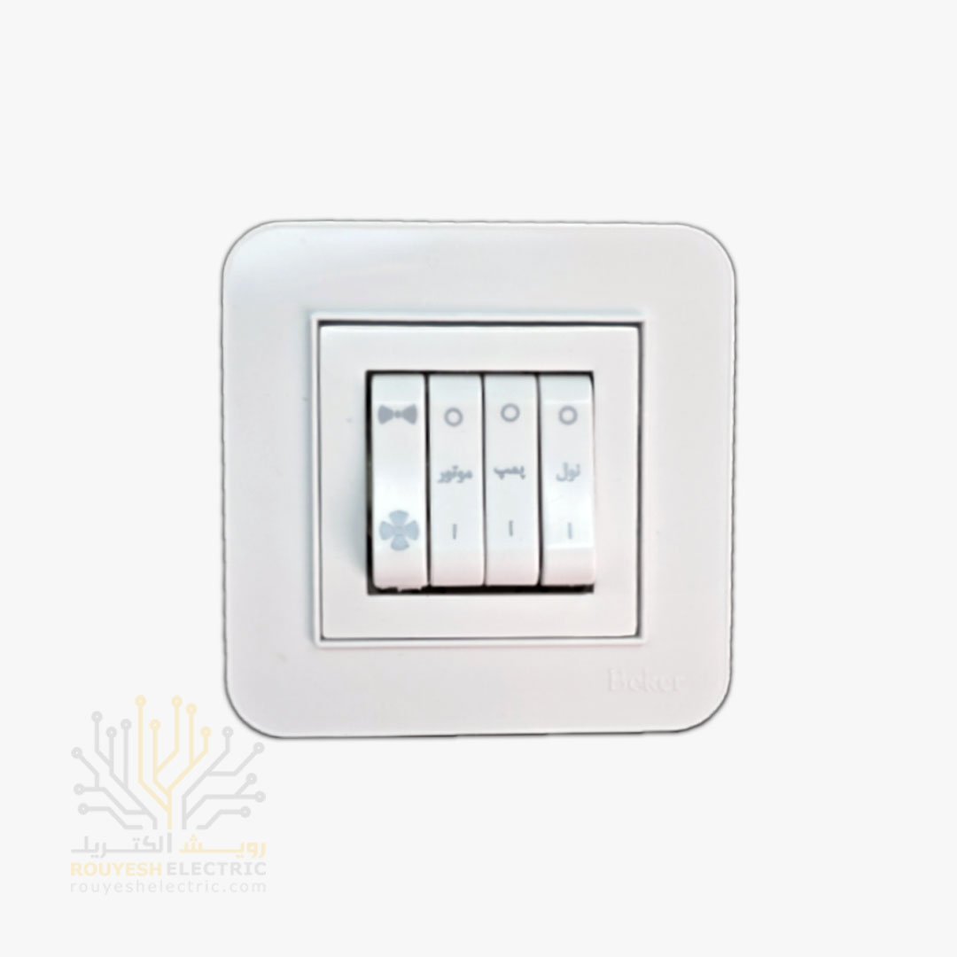 کلید کولر آبی چهارپل توکار برند بکر مدل آتا سفید