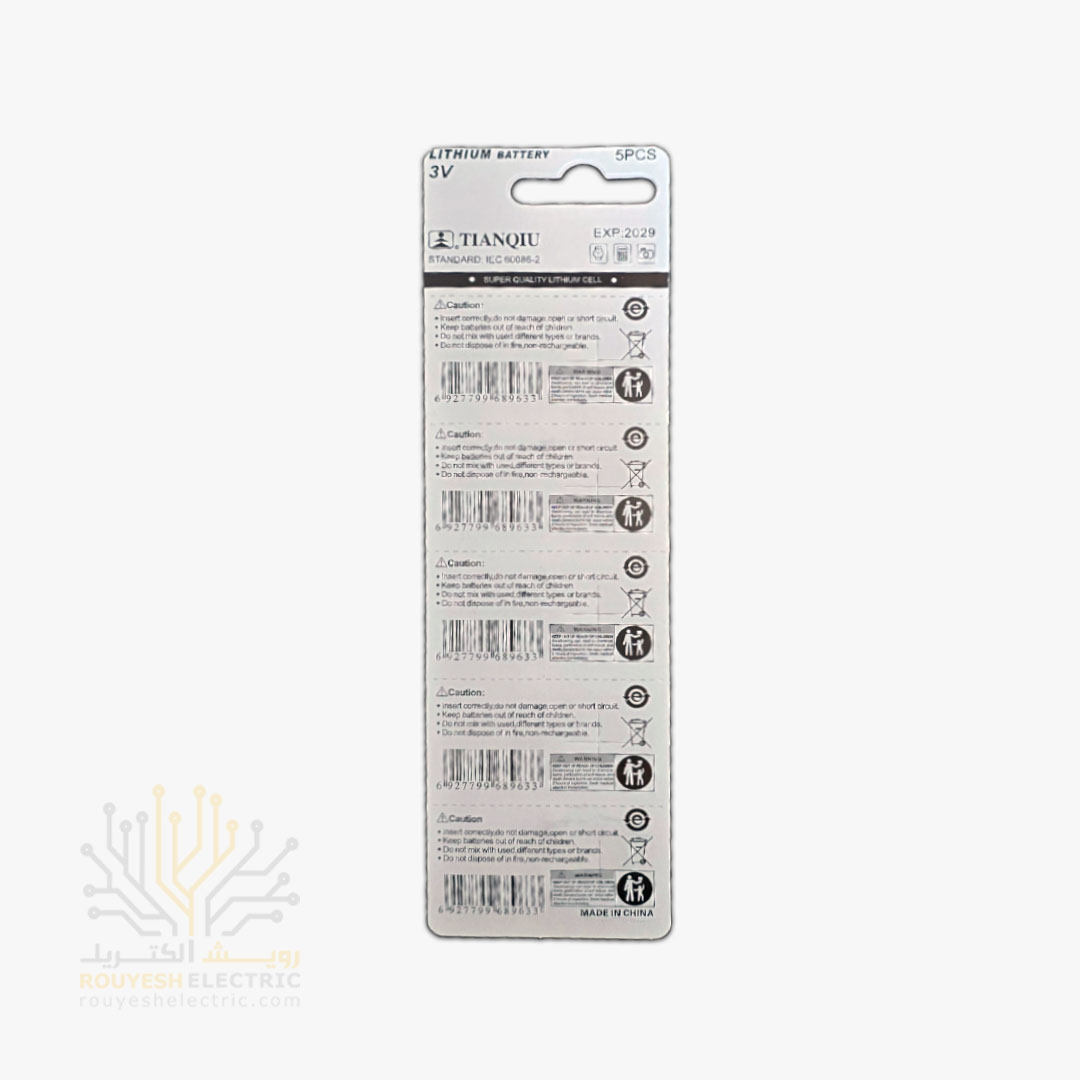 باطری سکه ای 2032 برند TIANQIU کارت 5 عددی