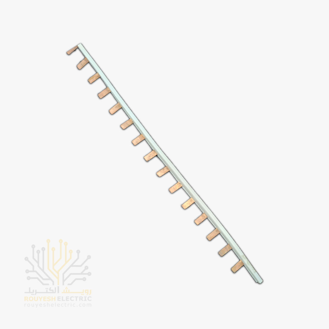 شانه فیوز مسی با عایق، ابزاریست برای توزیع یکنواخت برق بین فیوزهای مینیاتوری (MCB) در تابلوهای برق. مدل ۱ متری آن امکان نصب سریع و یکپارچه در ردیفهای طولانی فیوز را فراهم میکند. این محصول باعث افزایش ایمنی، کاهش سیمکشیهای پراکنده و ظاهری منظم در تابلو برق میشود.