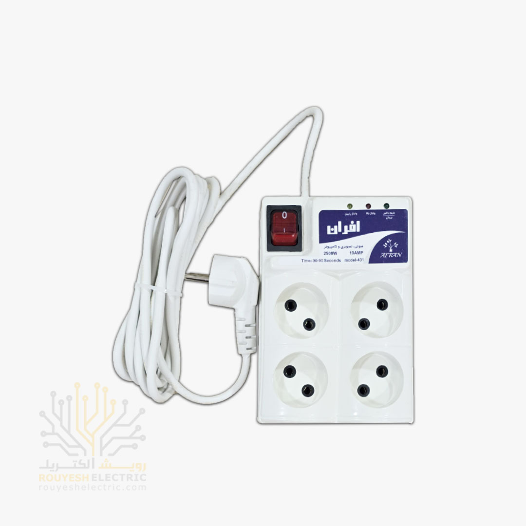 محافظ برق کامپیوتر سیار چهار خانه برند افران مدل 401 استاندارد بدون ارت کلید دار بدنه سفید آنالوگ 3 متری