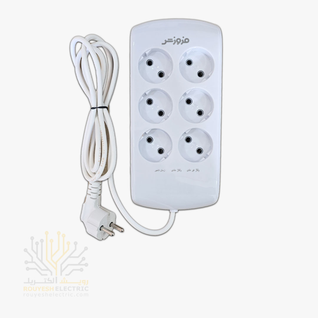 محافظ برق کامپیوتر برند فروزش مدل لوتوس 6 خانه 2 متری دیجیتال سفید
