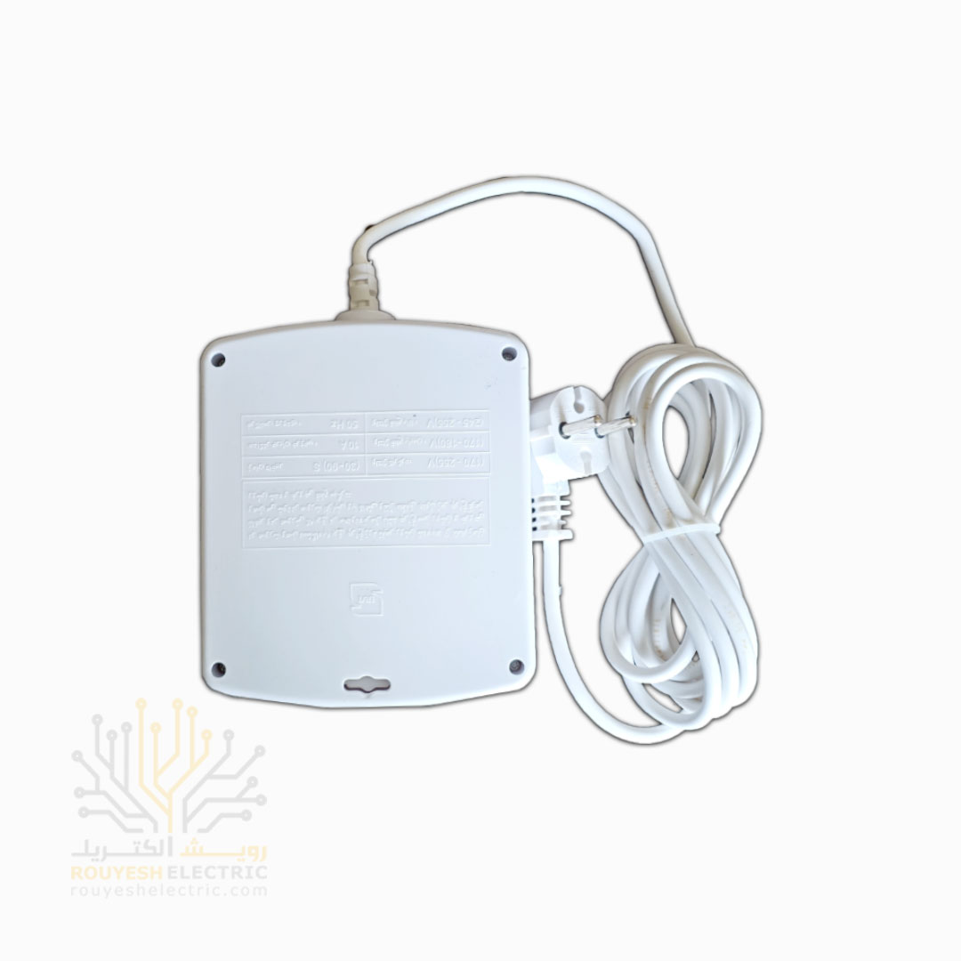 ساخت ایرانه و با برق ۲۲۰ ولت ورودی و خروجی کار می‌کنه و شدت جریان 10 آمپر رو جواب می‌ده. کابلش با نمره 2x0.75 کیفیت خوبی داره و محدوده عملکرد ولتاژش بین 170 تا 255 تنظیم شده تا نوسانات برق اذیتت نکنه. زمان تأخیر ۳۰ تا ۹۰ ثانیه‌ایش هم کمک می‌کنه دستگاه‌هات بعد از نوسان، با تأخیر امن وصل بشن. مغزی پلی‌کربناتی و استاندارد ملی هم تضمین‌کننده کیفیتشه. از همه بهتر، ضمانت‌هاشه. دو سال گارانتی تعویض، دو سال ضمانت تغییر شکل و حتی یک سال ضمانت برگشت در صورت پسند نکردن؛ یعنی کاملاً با خیال راحت می‌تونی خریدش کنی.