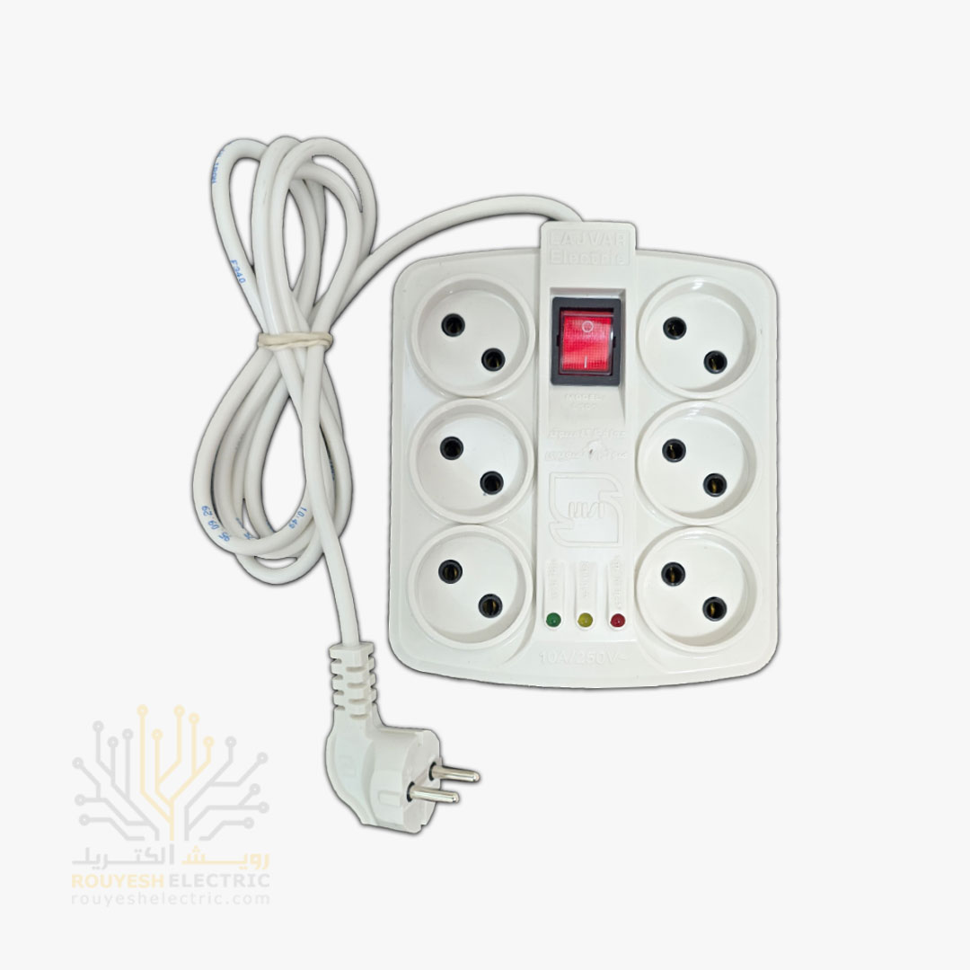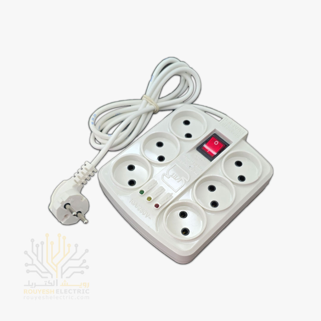 محافظ برق کامپیوتر سیار شش خانه برند فروزش مدل FR600 بدون ارت کلید دار بدنه سفید آنالوگ 2/8 متری