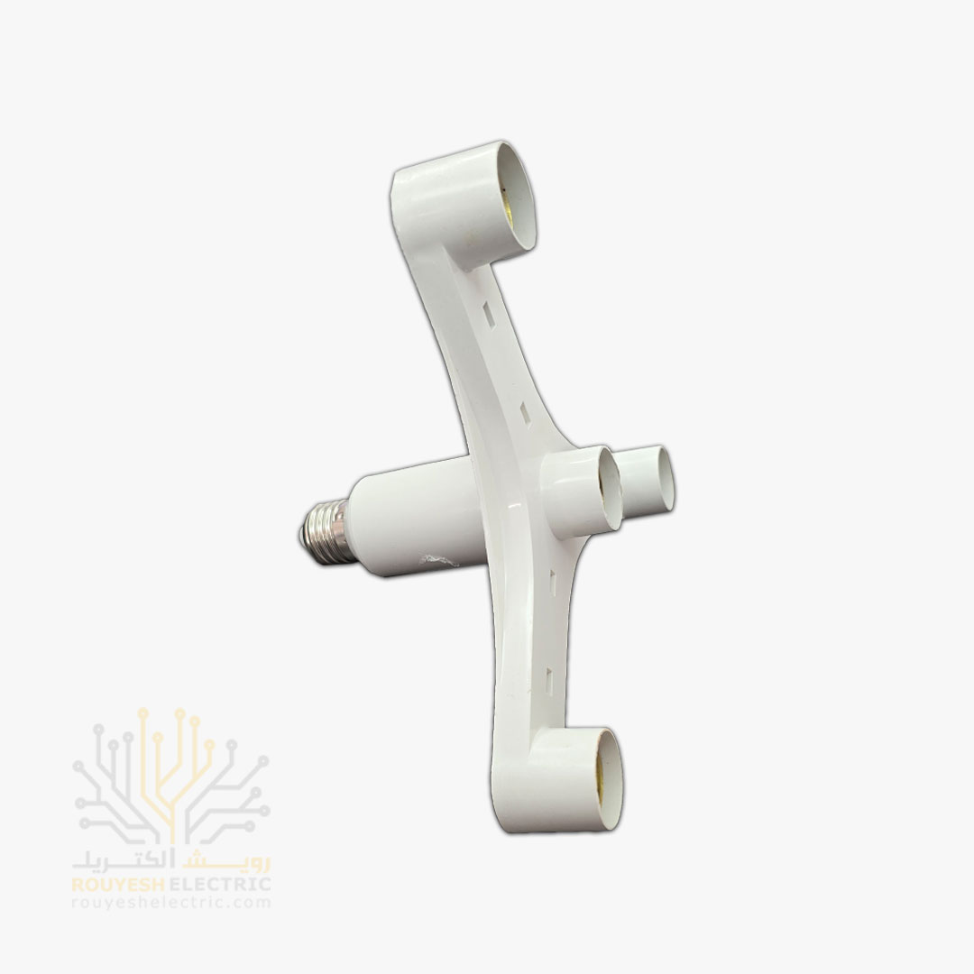 این قطعه یک رابط چندسرپیچه است که یک ورودی سرپیچ استاندارد (معمولاً E27) را به چهار سرپیچ مجزای E27 تبدیل میکند. این مبدلها معمولاً دارای طراحی شعاعی یا ستارهای هستند تا چهار لامپ را در اطراف یک نقطه مرکزی جای دهند. کیفیت ساخت بدنه (معمولاً پلاستیک نسوز یا باکالیت) و اتصالات داخلی (رسانا بودن مس یا آلومینیوم) در تعیین ایمنی و کارایی آن بسیار مهم است.