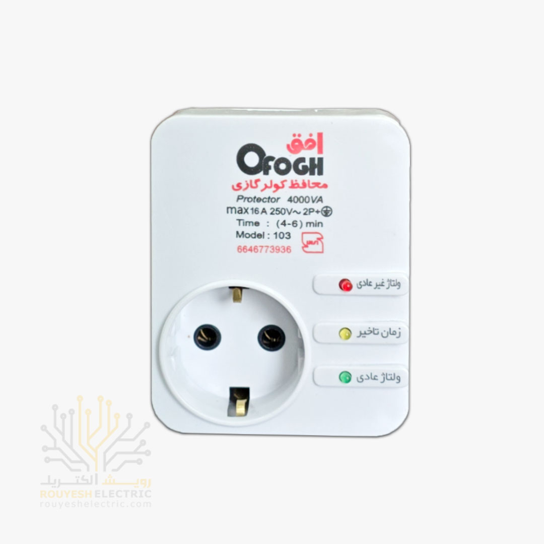 محافظ برق کولر برند افق مدل 103 تک خانه استاندارد آنالوگ دیواری