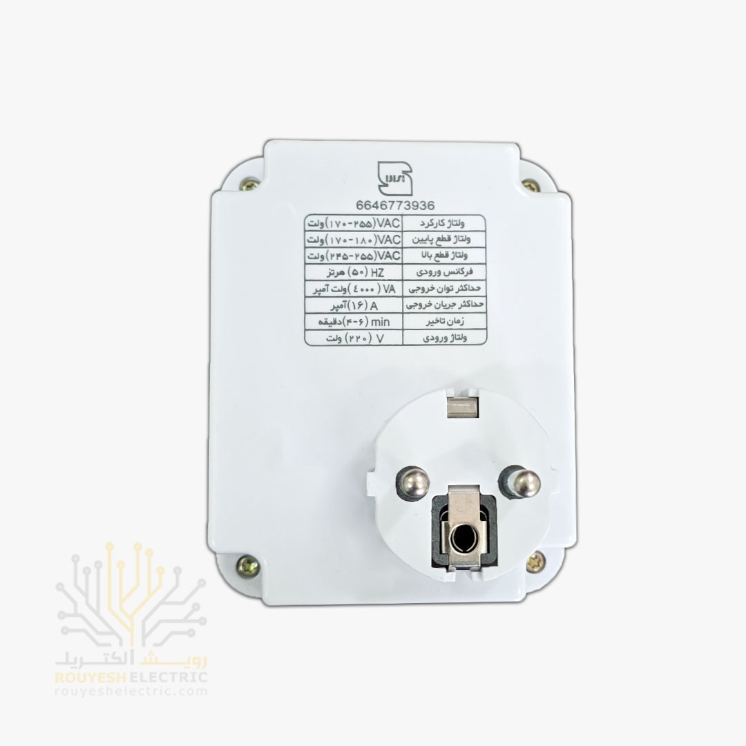 محافظ برق کولری برند فروزش مدل LT100 لوتوس ارتدار کلید دار تک خانه آنالوگ بدنه سفید دیواری