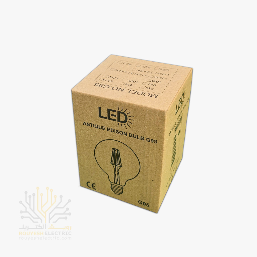 لامپ 6 وات فیلامنتی برند آر او اچ اس مدل G95 آفتابی
