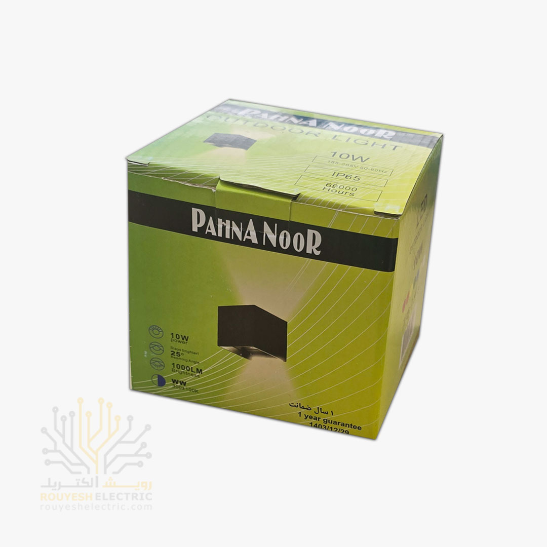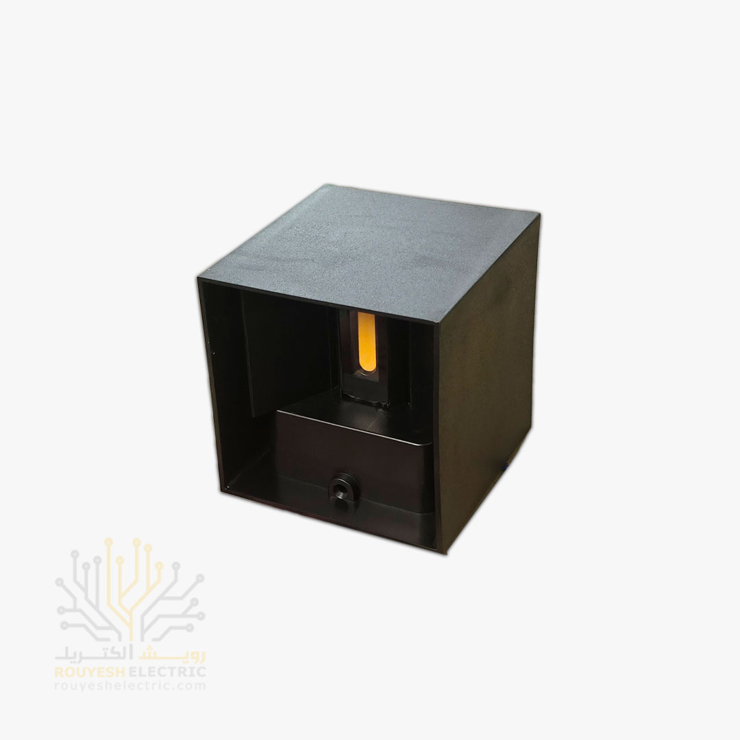چراغ دیواری دکوراتیو 10 وات برند پهنانور مدل مکعب دو طرفه بدنه مشکی نور آفتابی