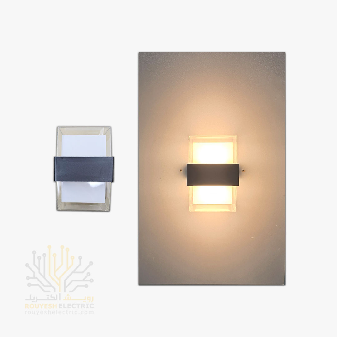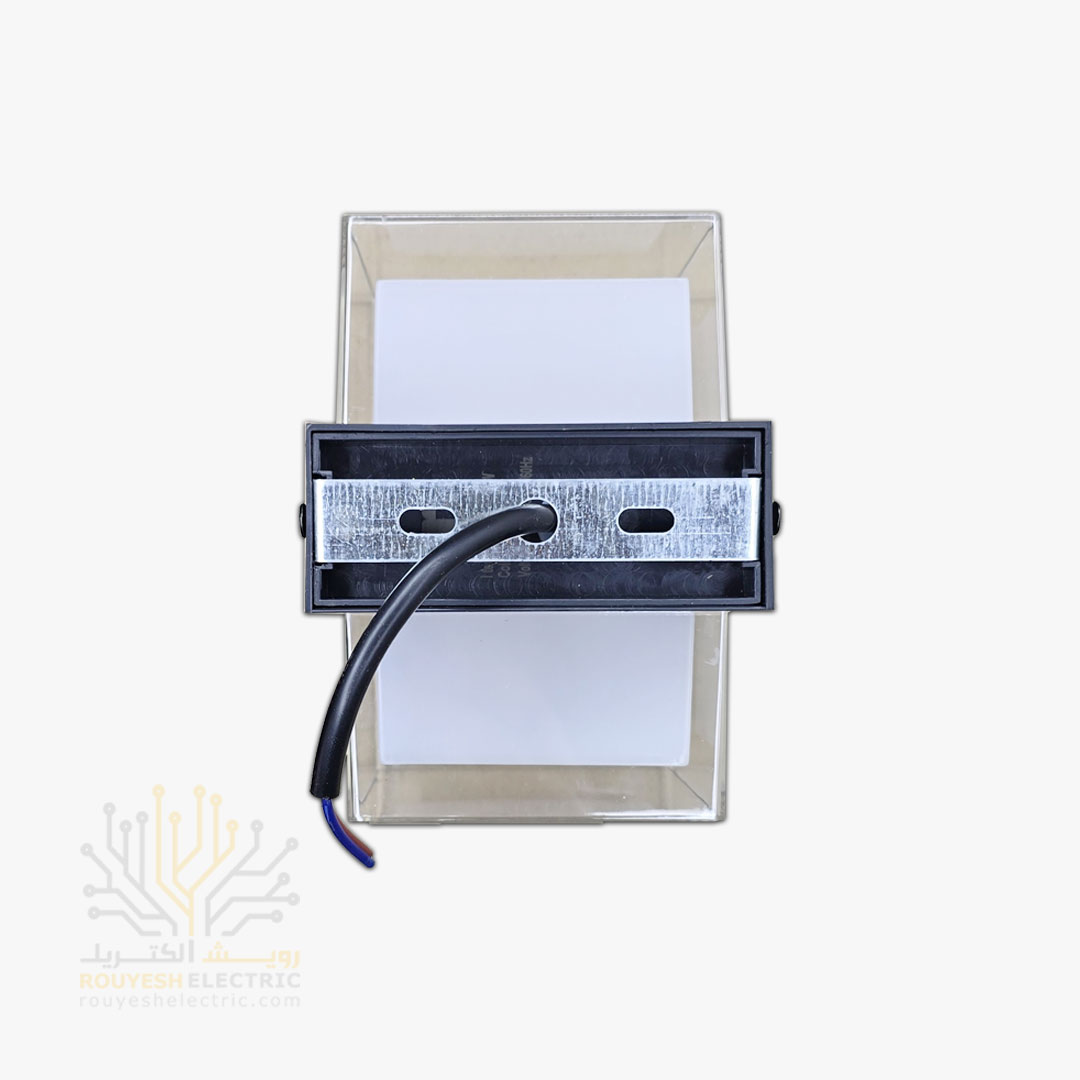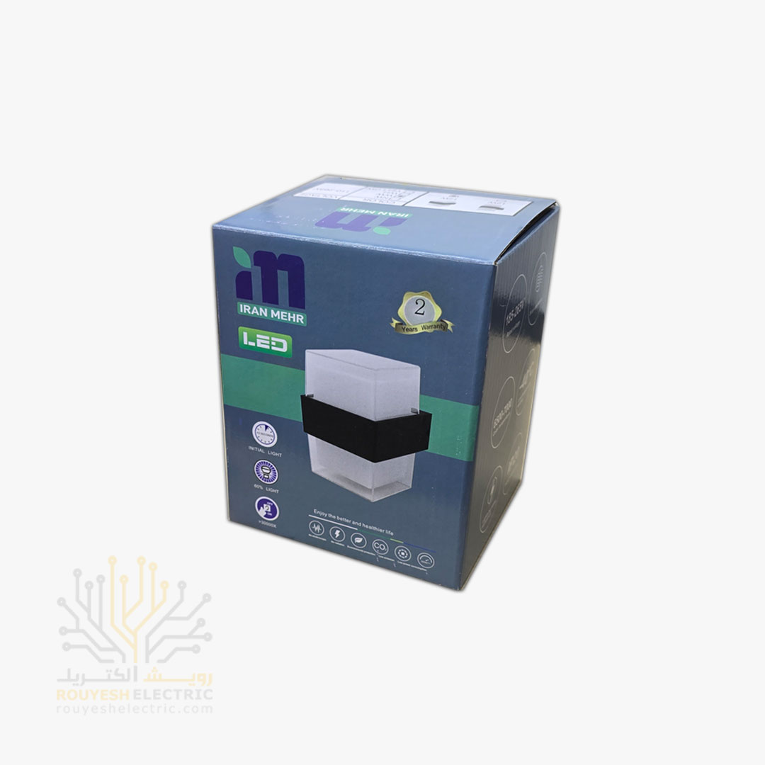 چراغ دیواری دکوراتیو 12 وات برند ایران مهر مدل مکعب دو طرفه ایران 23 بدنه مشکی نور آفتابی