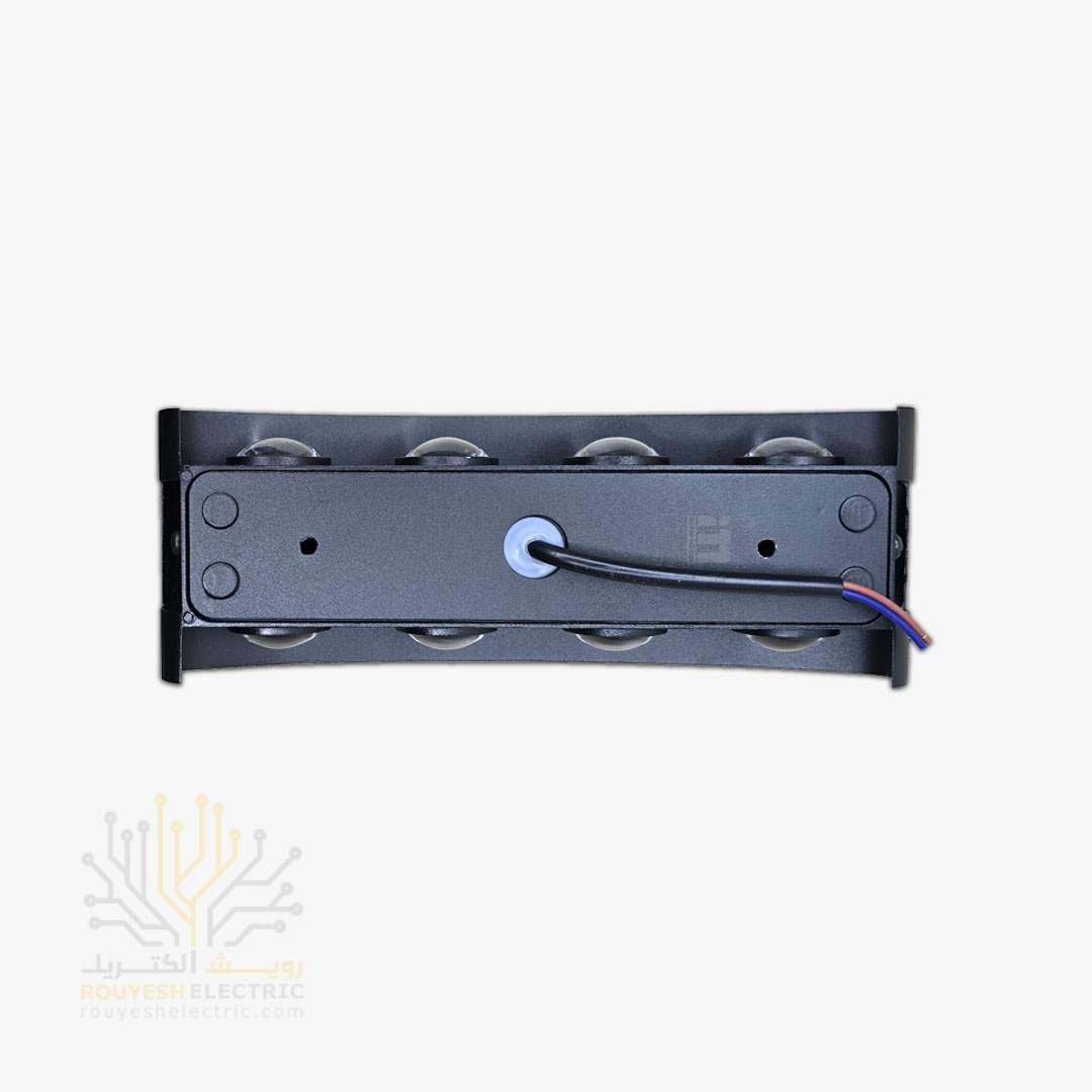چراغ دیواری دکوراتیو 8 وات برند ایران مهر مدل قطاری بدنه آلومینیوم مشکی نور آفتابی
