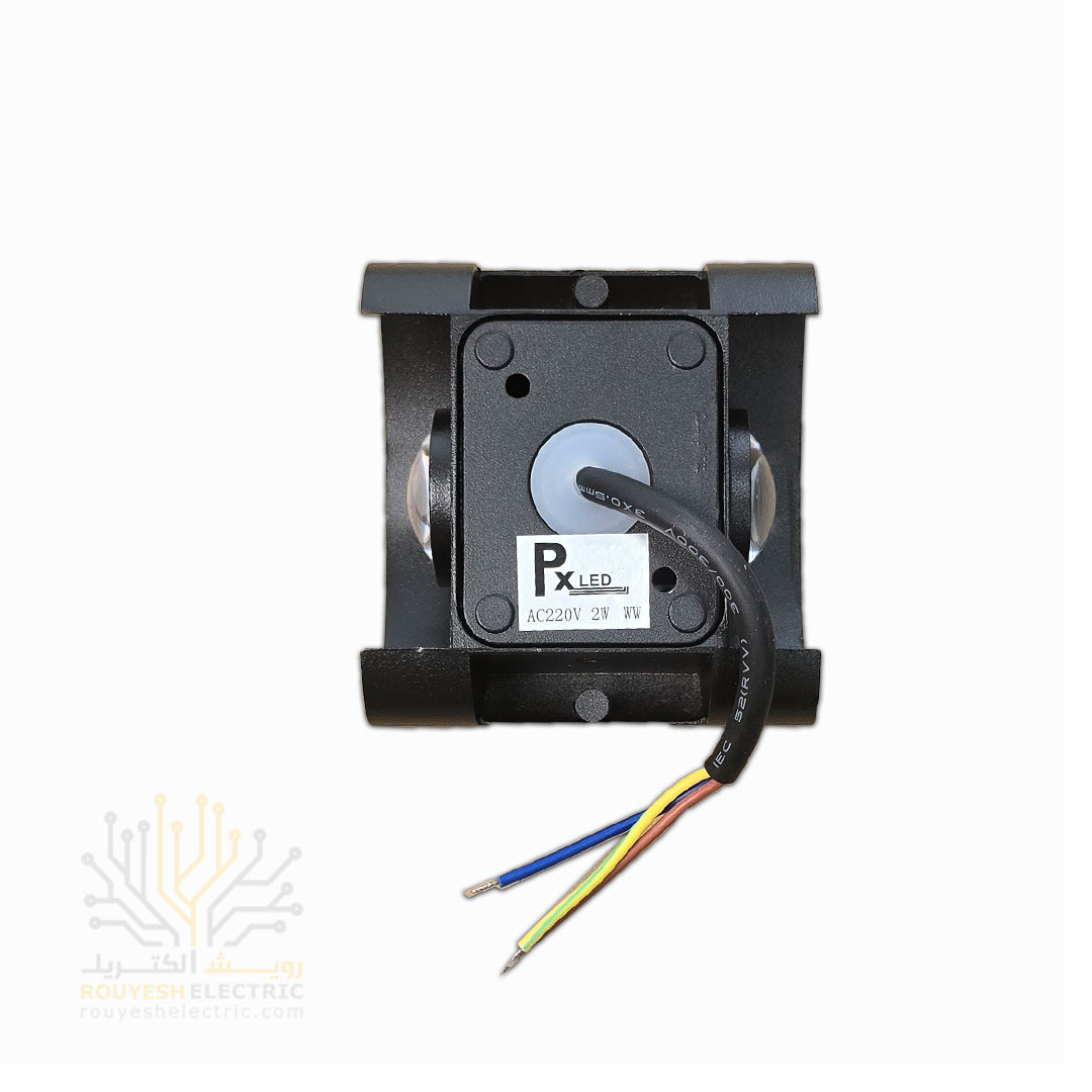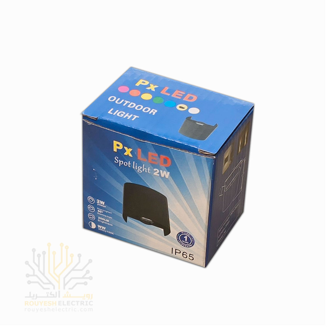 چراغ دیواری دکوراتیو 2 وات برند PXLED مدل قطاری چیپ کری بدنه آلومینیوم مشکی نور آفتابی