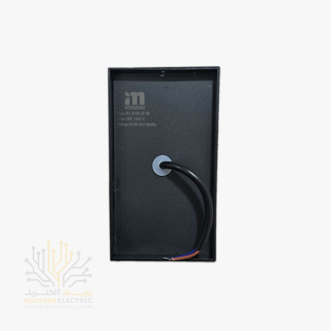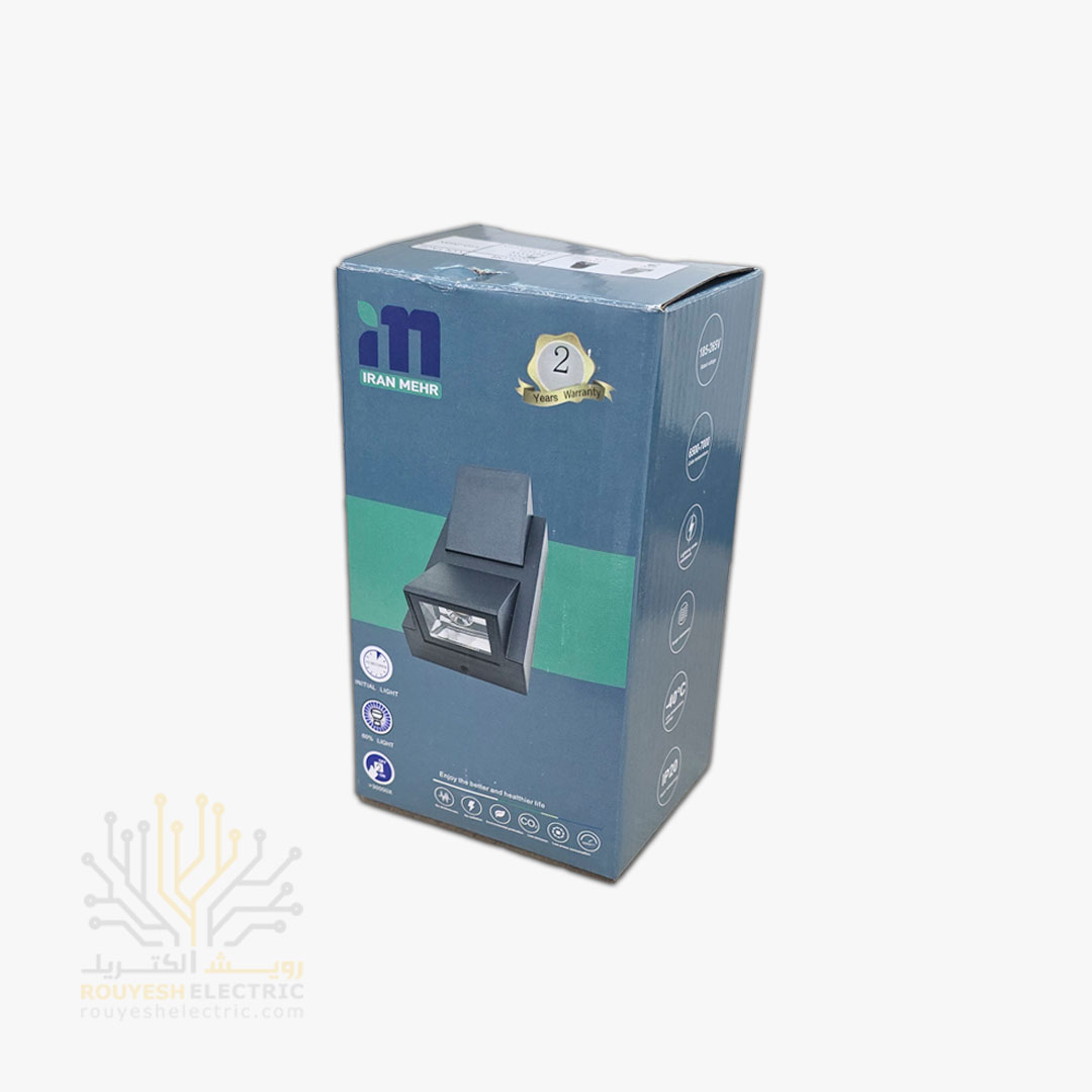 چراغ دیواری دکوراتیو 6 وات برند ایران مهر مدل کلبه ای یک طرفه کد ایران 50 بدنه آلومینیوم مشکی آفتابی