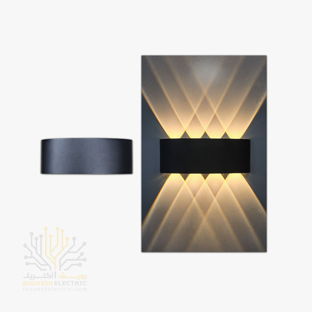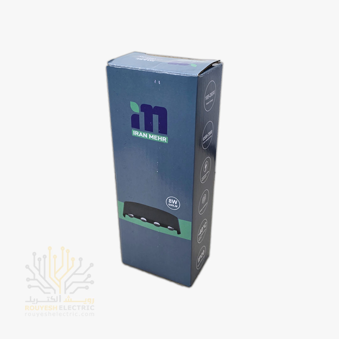 چراغ دیواری دکوراتیو 8 وات برند ایران مهر مدل قطاری کد ایران 04 بدنه ABS مشکی نور آفتابی