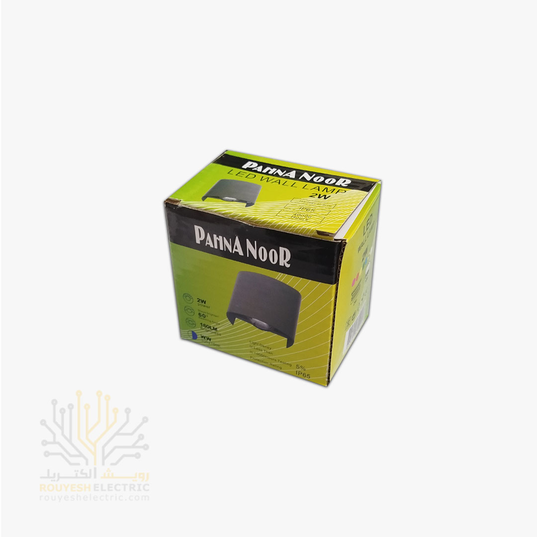 چراغ دیواری دکوراتیو برند پهنانور مدل قطاری 2 وات چیپ کری بدنه آلومینیوم مشکی نور آفتابی