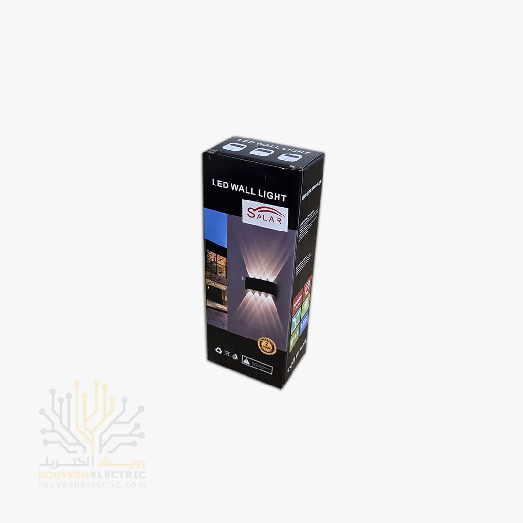 چراغ دیواری دکوراتیو برند سالار مدل قطاری 8 وات بدنه ABS مشکی نور آفتابی