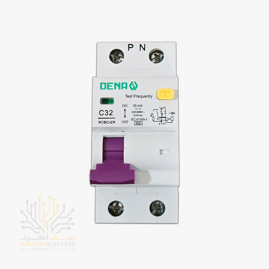 کلید محافظ جان مولتی فانکشن برند دنا تکفاز مدل RCBO الکترونیک 32 آمپر