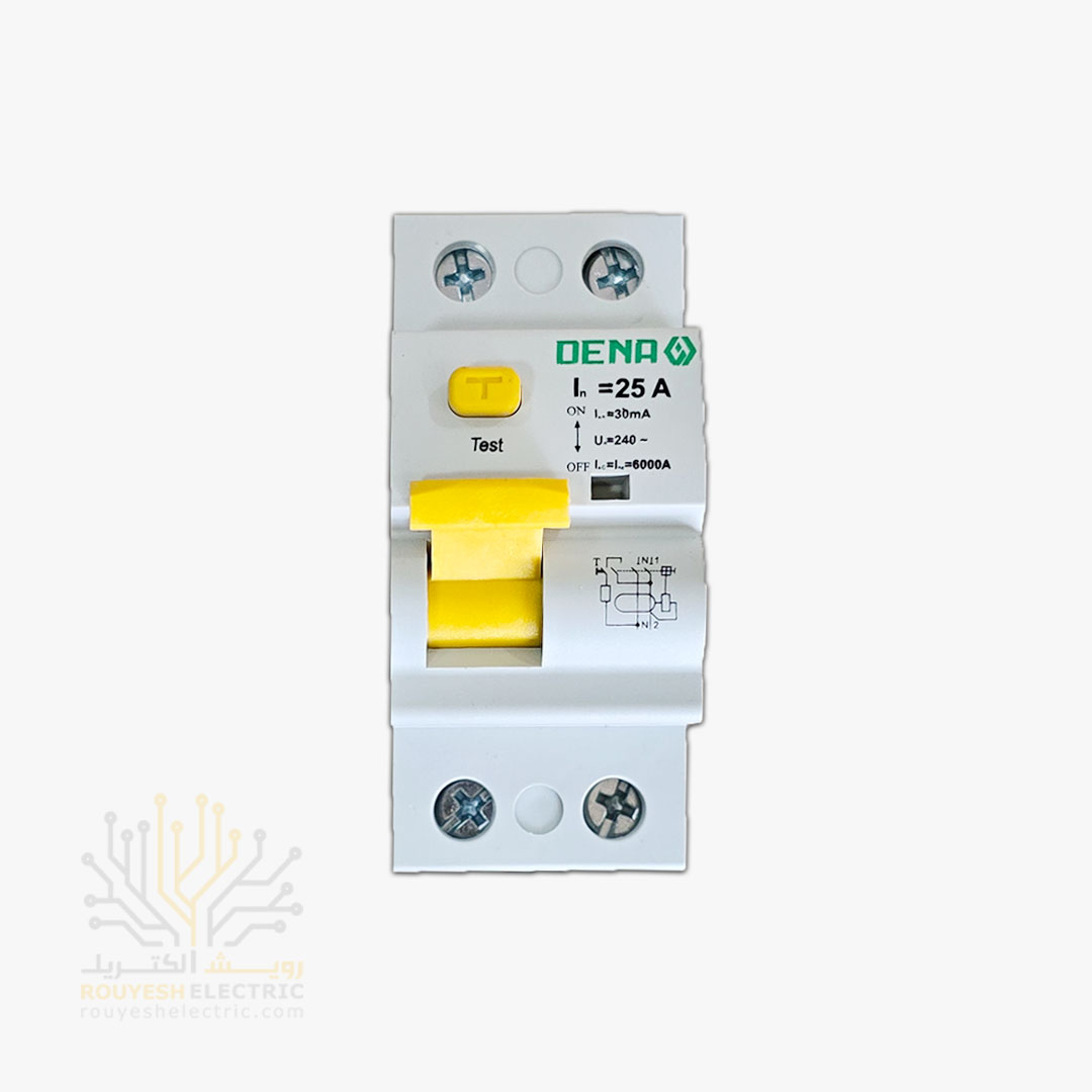 کلید محافظ جان دوپل برند دنا تکفاز مدل RCCB مگنتیک 25 آمپر