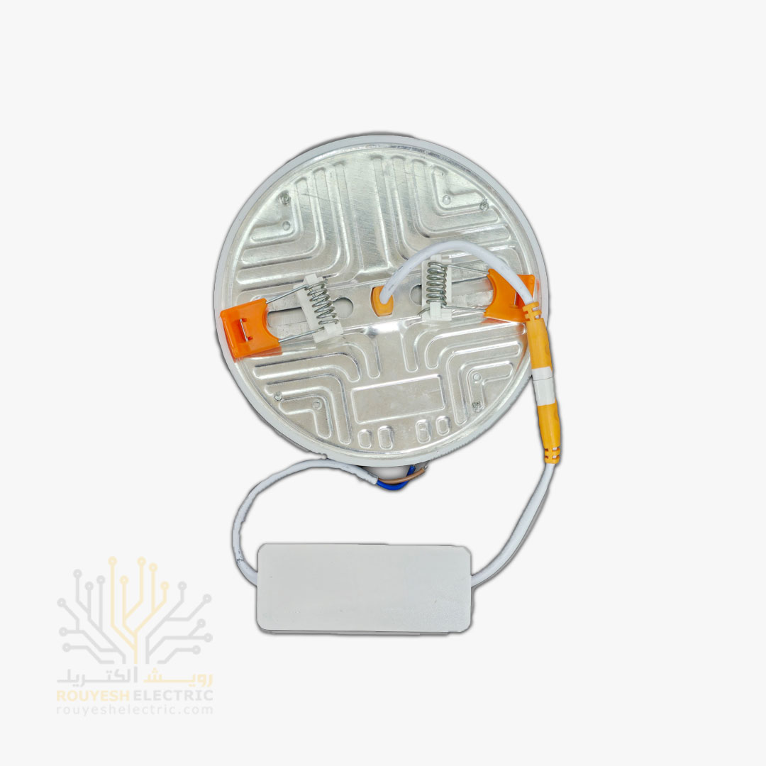 پنل سقفی توکار فول لایت 10 وات برند تک تاب مدل هاله فنر متغیر دایره استاندارد رنگ آفتابی