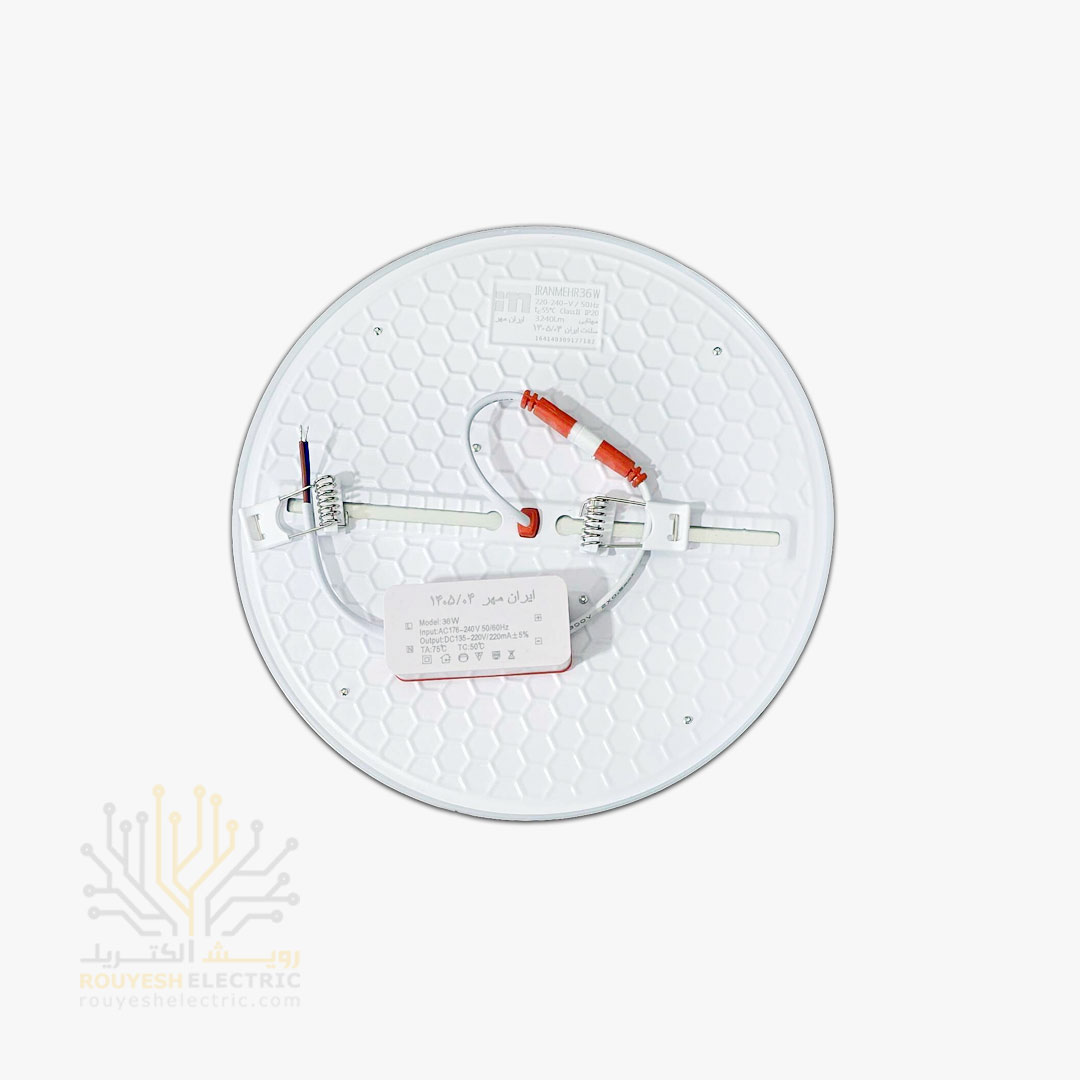 پنل سقفی توکار فول لایت 36 وات برند ایران مهر فنر متغیر دایره استاندارد رنگ نچرال