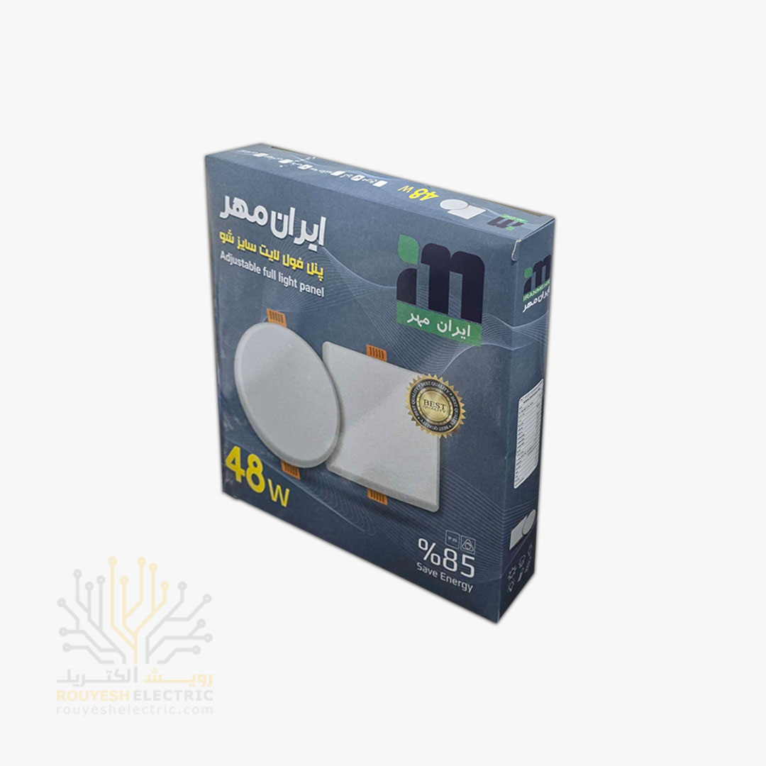 پنل سقفی توکار فول لایت 48 وات برند ایران مهر فنر متغیر دایره استاندارد رنگ نچرال
