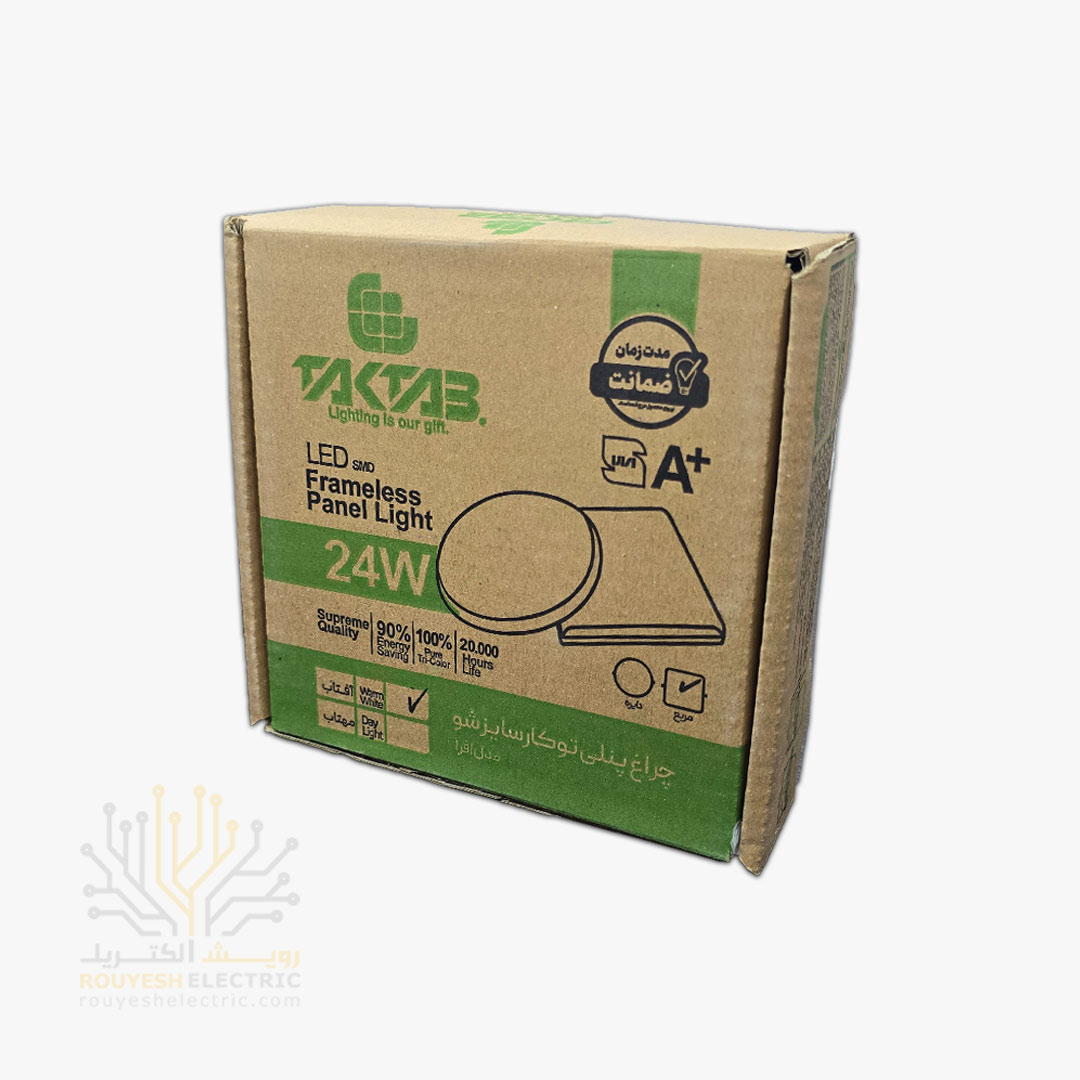 پنل سقفی توکار 24 وات برند تک تاب مدل فول لایت فنر متغیر مربع استاندارد آفتابی