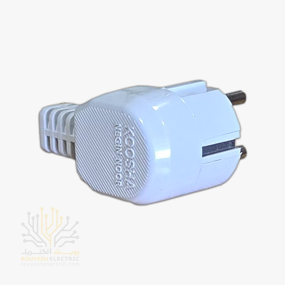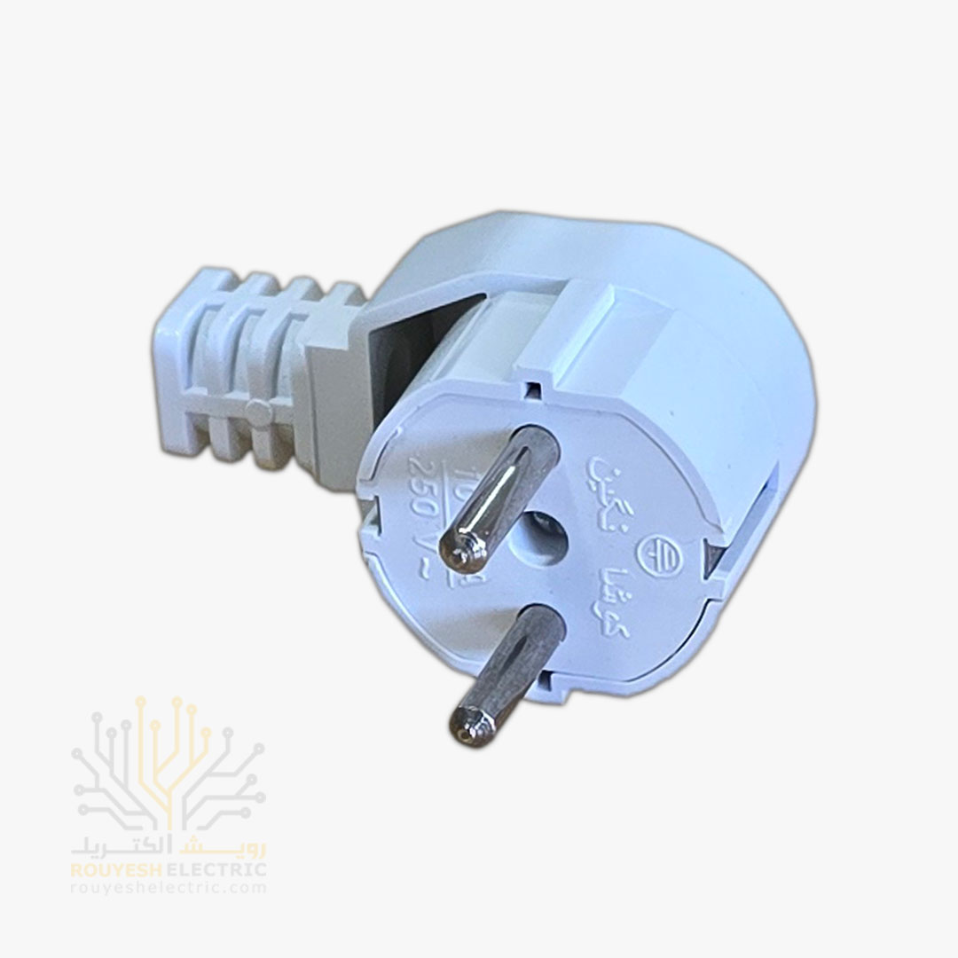 دوشاخه برق چپقی برند کوشا نگین میله آهنی رنگ سفید