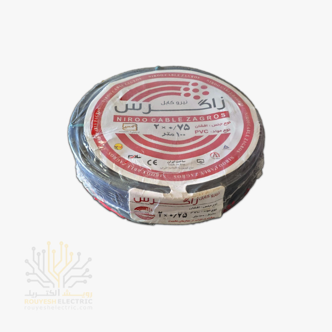 کابل برق نمره 2x0/75 برند نیرو کابل زاگرس استاندارد حلقه 100 متری