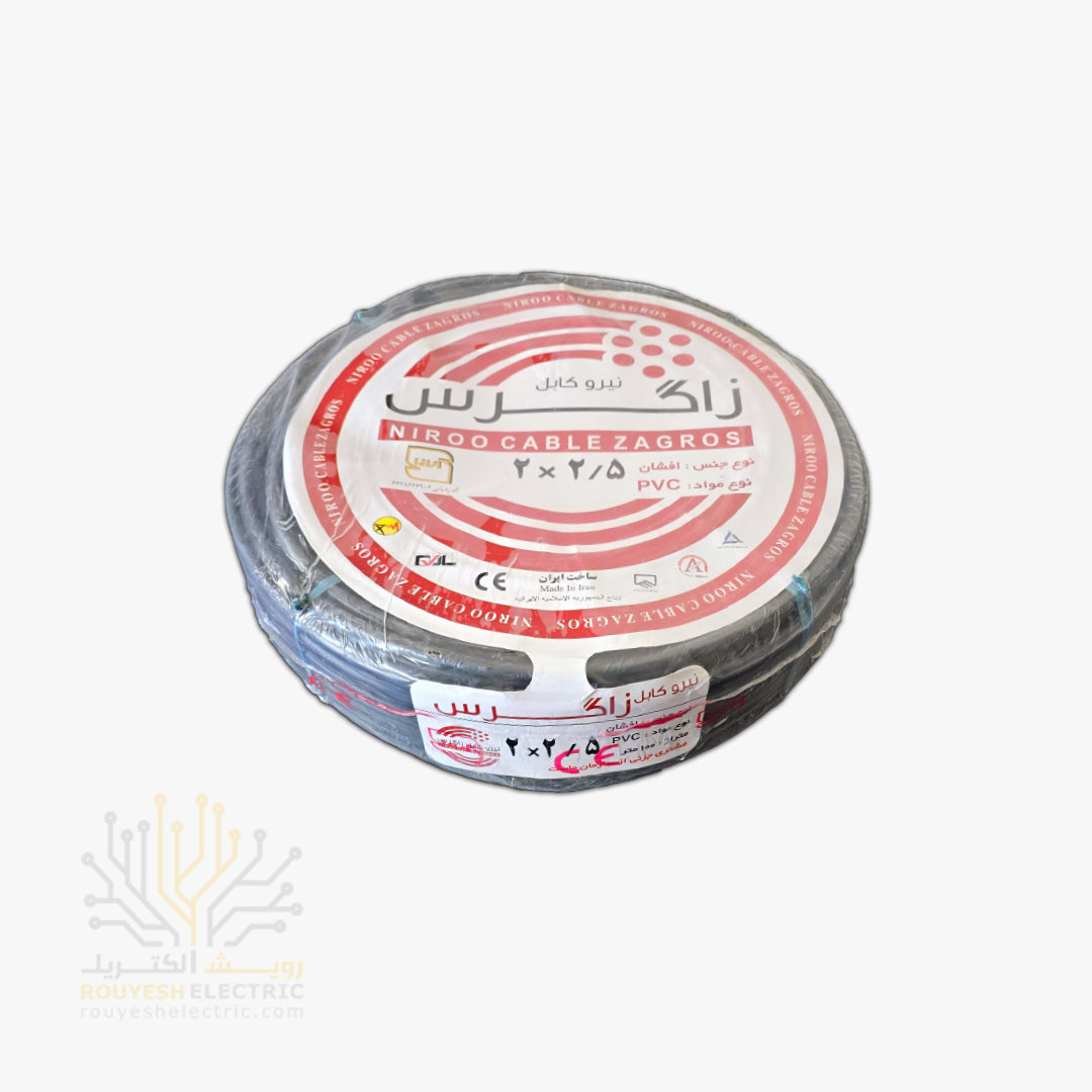 کابل برق نمره 2x2/5 برند نیرو کابل زاگرس استاندارد حلقه 103 متری