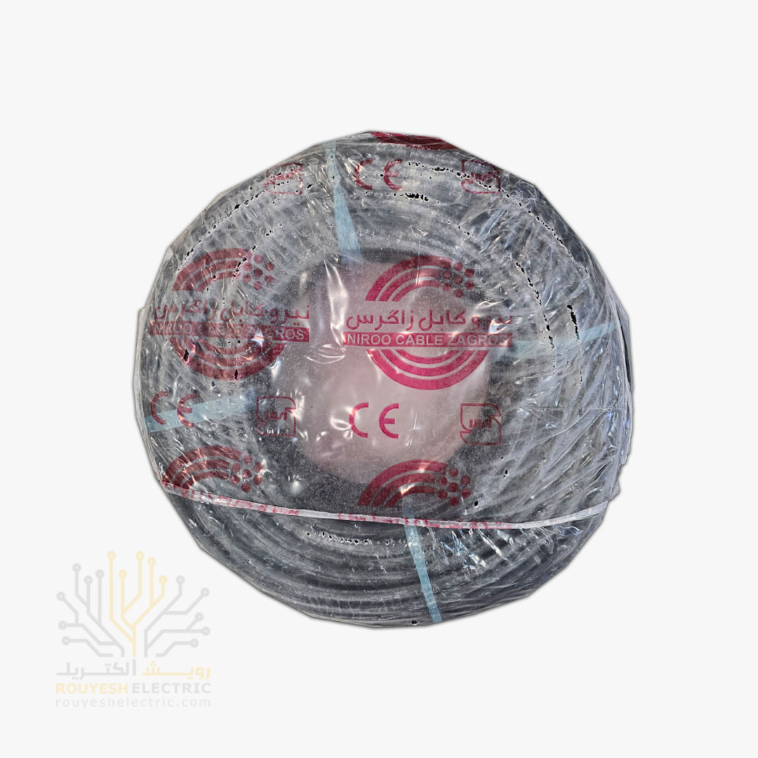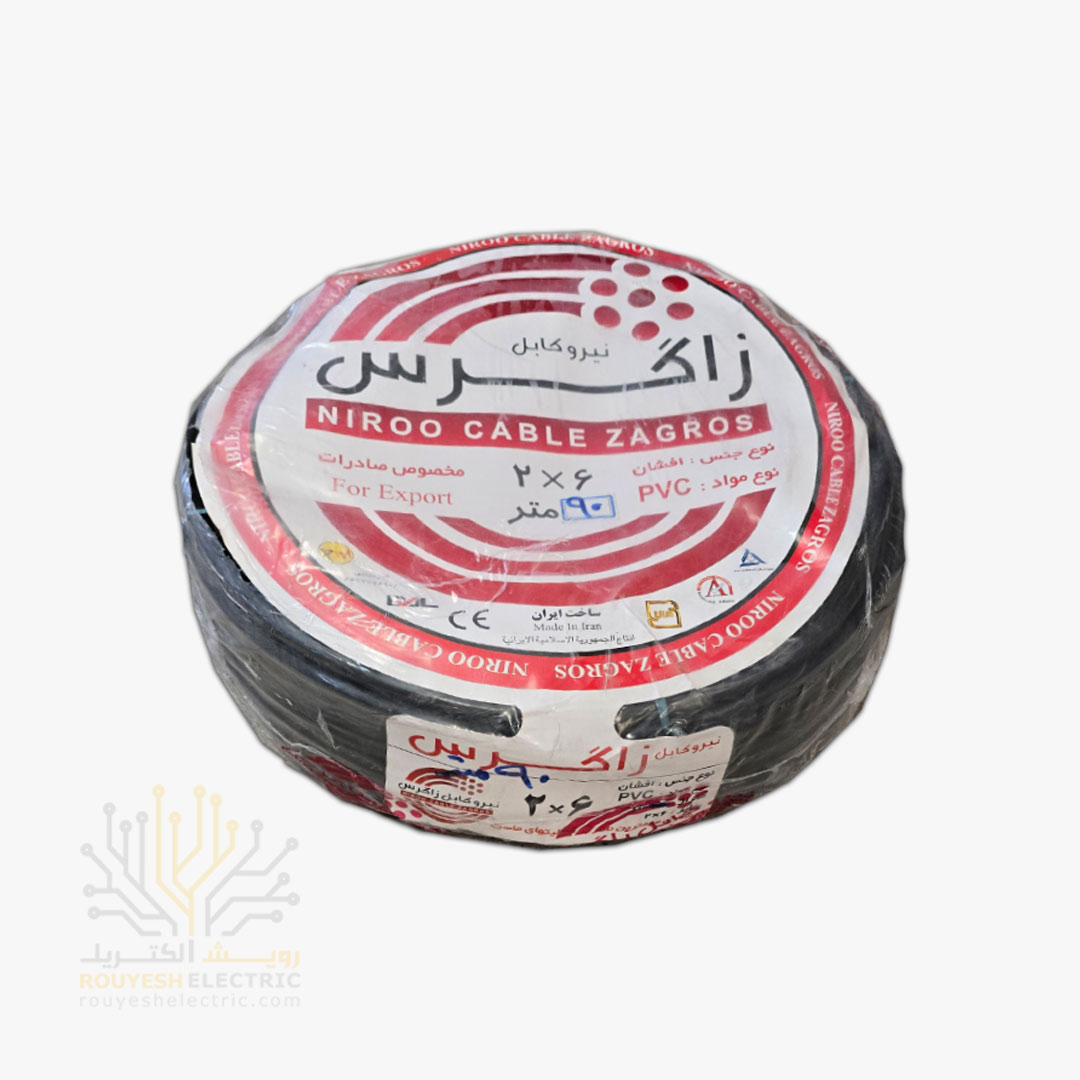 کابل برق نمره 2x6 برند نیرو کابل زاگرس استاندارد حلقه 90 متری