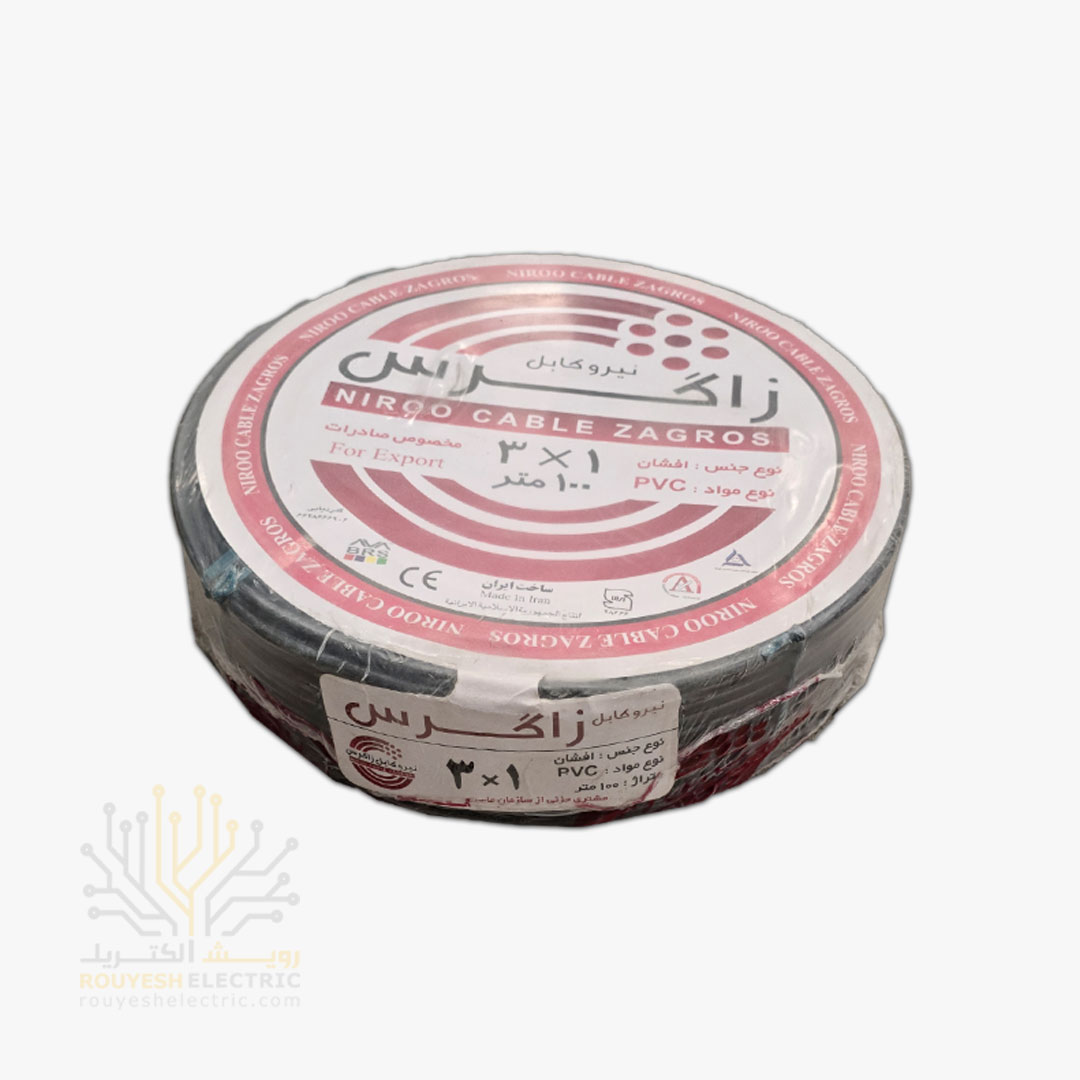 کابل برق نمره 3x1 برند نیرو کابل زاگرس استاندارد حلقه 100 متری