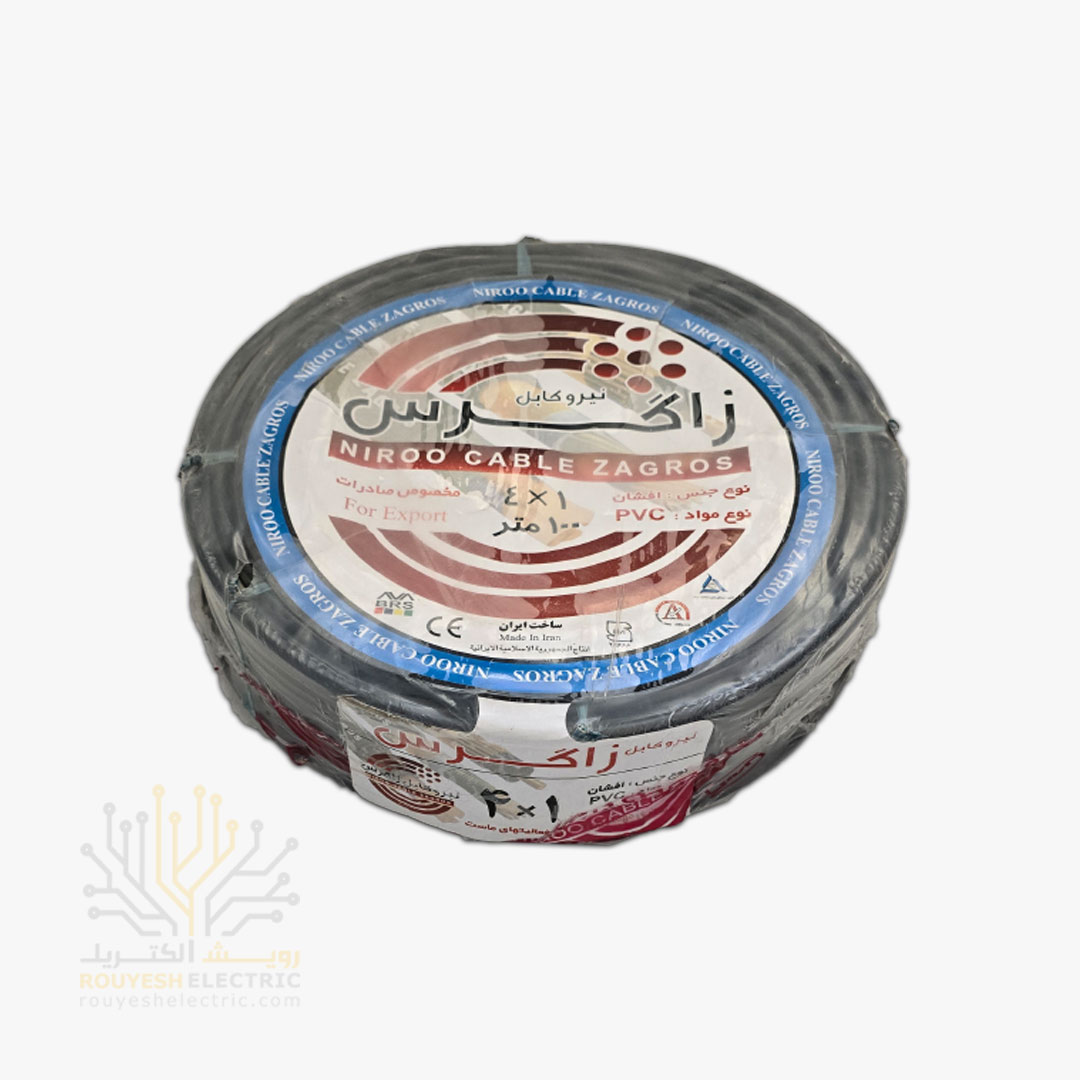 کابل برق نمره 4x1 برند نیرو کابل زاگرس استاندارد حلقه 100 متری