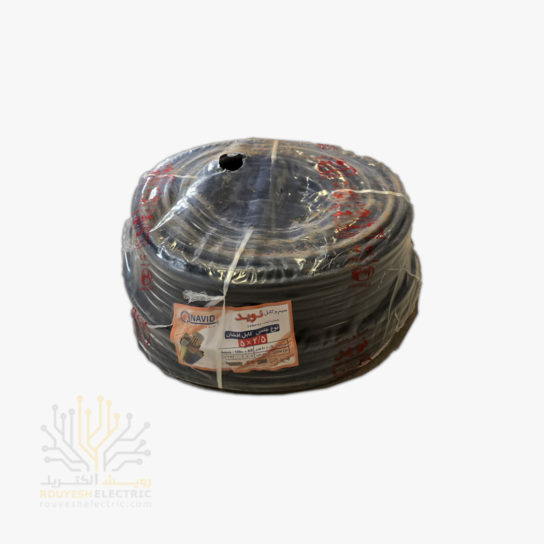 کابل برق نمره 5x2/5 برند نوید استاندارد حلقه 100 متری