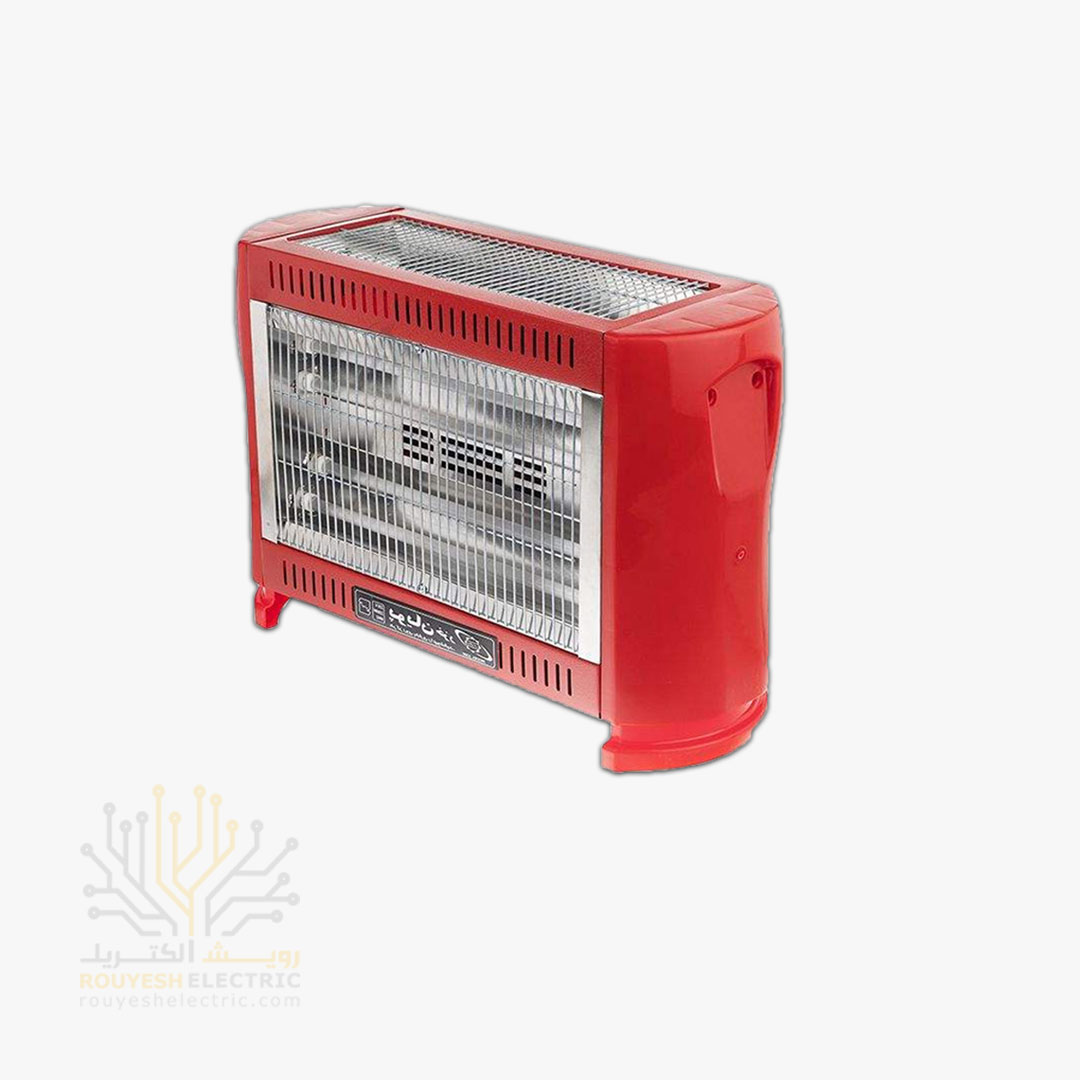بخاری برقی استاندارد برند ماد الکتریک مدل رویال 4 شعله 2000 وات فن دار بدنه قرمز