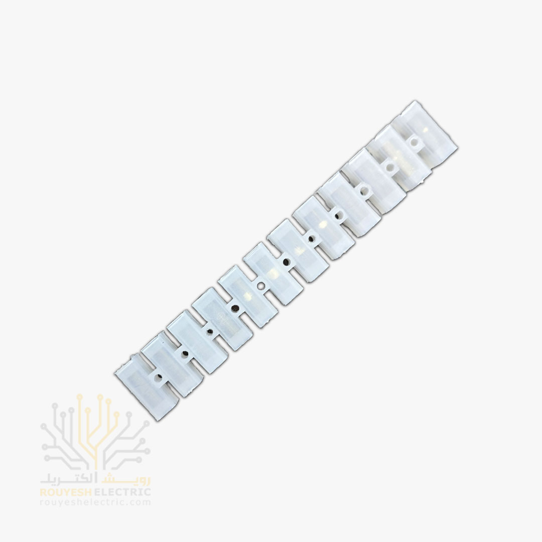این ترمینال ظاهر ساده و کاربردیای داره، به شکل یه مستطیل کوچیک با طول حدود ۱۳ سانت، عرض ۱.۸ سانت و ارتفاع ۱.۵ سانت. بدنهاش از پلیاتیلن ساخته شده و چون بیرنگ و شفافه، داخلش هم دیده میشه که خیلی به درد کار دقیق میخوره. هر بسته توی یه جعبه مقوایی تمیز قرار داره و توی هر بسته ۱۰ شاخه وجود داره. اگه بخوای تعداد بالا بخری، هر کارتن شامل ۲۰۰ بستهست. حداقل خرید هم ۱۰ شاخهست. ضمناً هر شاخه ۱۲ تا سیمگیر داره که باعث میشه کار سیمکشی خیلی راحتتر بشه.