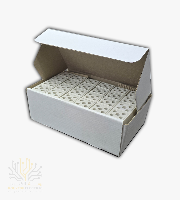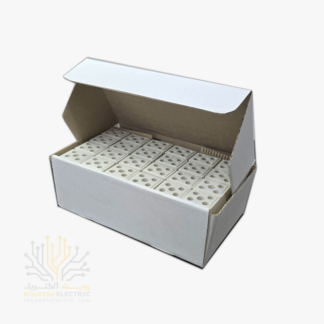ترمینال نمره 25 سرامیکی دو خانه، یک قطعه اتصال الکتریکی است که برای برقراری ارتباط ایمن بین سیمهای برق با سطح مقطع بالا طراحی شده است. این ترمینال از جنس سرامیک ساخته شده که مقاومت بالایی در برابر حرارت و جریان الکتریکی دارد و به همین دلیل برای کاربردهای صنعتی و محیطهایی با دمای بالا مناسب است. عدد “25” به حداکثر سطح مقطع مجاز سیم اشاره دارد که این ترمینال قادر به پشتیبانی از آن است و “دو خانه” به معنای داشتن دو محل برای اتصال سیمها است.