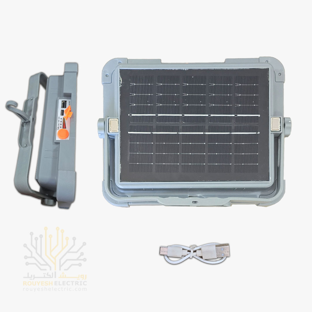 چراغ اضطراری پروژکتوری 156 SMD برند وتکو پنج حالته 800 وات دارای پنل خورشیدی