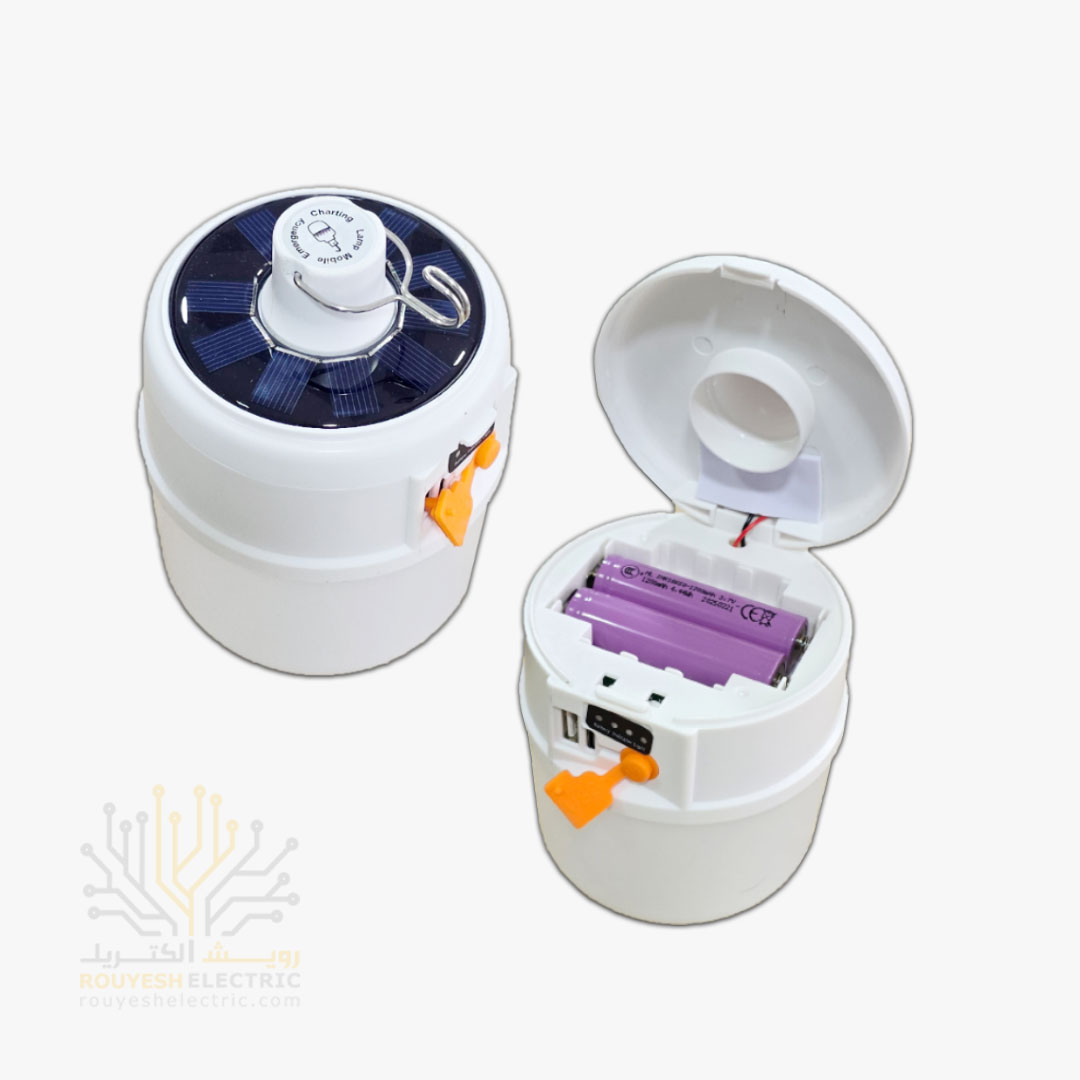 چراغ اضطراری لامپی 30 SMD برند HGDUE مدل HG-1566 طرح بالب 50 وات سه حالته دارای پنل خورشیدی گیره دار