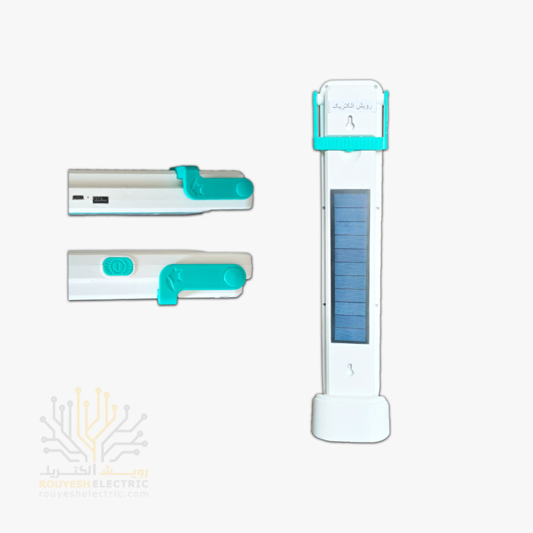 این چراغ مجهز به باتری داخلی قابل شارژ است که از طریق پنل خورشیدی یا پورت Type-C شارژ میشود. پس از شارژ کامل، میتواند تا چند ساعت نوردهی مداوم داشته باشد. با بهرهگیری از ۷۰ عدد لامپ SMD LED، نور یکنواخت و قدرتمندی تولید میکند. سیستم نوردهی ۷ حالته شامل حالتهای مختلف نور سفید، زرد، ترکیبی، COB پرنور، COB ملایم، نور SOS و چراغ پلیسی چشمکزن است. همچنین قابلیت استفاده بهعنوان پاوربانک برای شارژ موبایل یا دستگاههای USB را دارد.