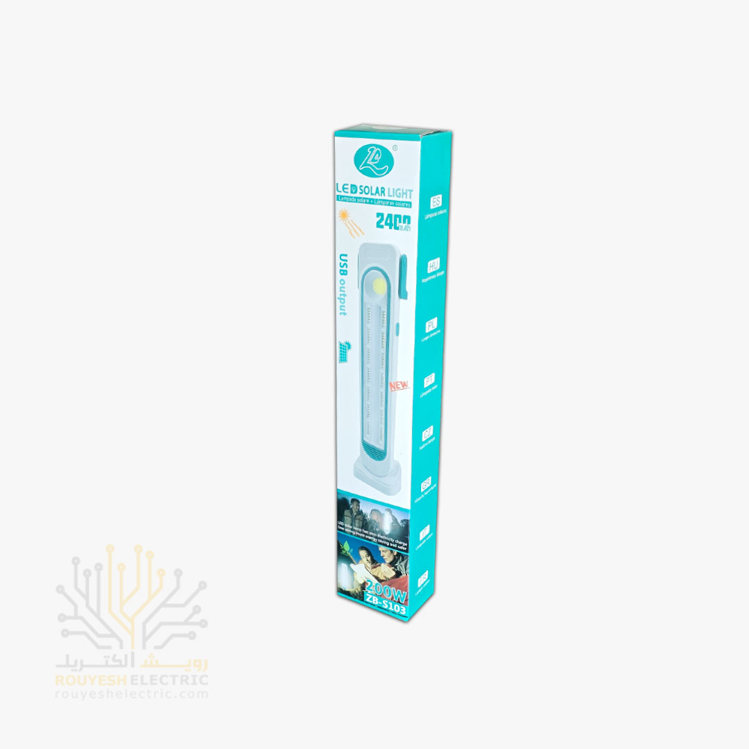 چراغ اضطراری 70 SMD ال ای دی دار برند ال دی مدل ZB-S103 دارای پنل خورشیدی 7 حالته